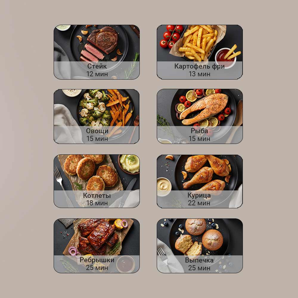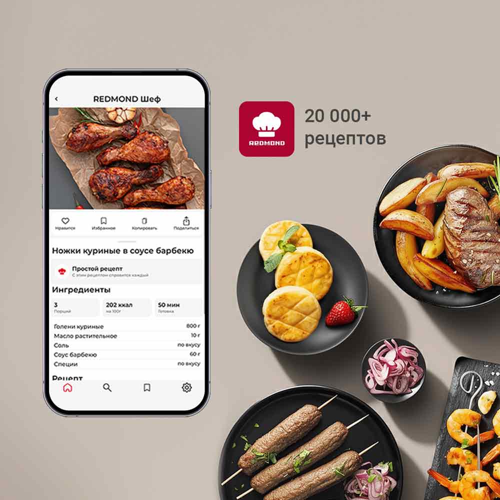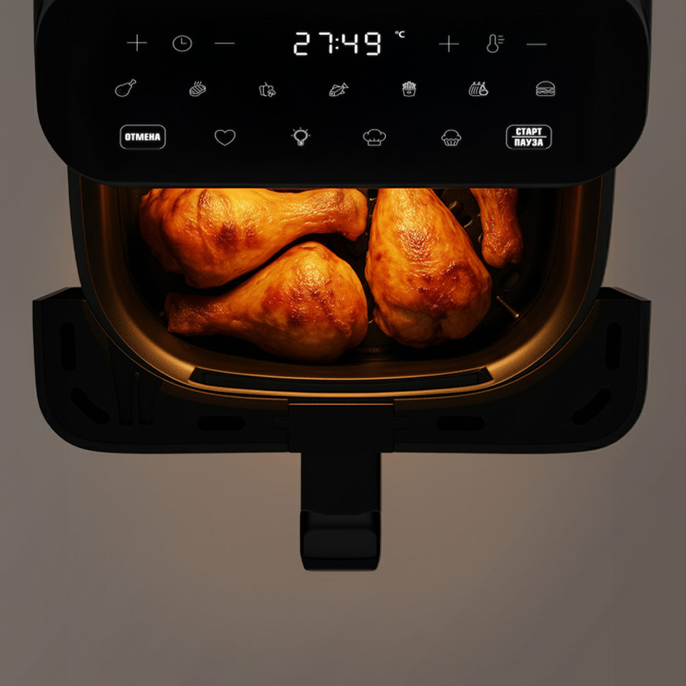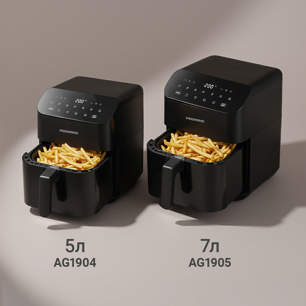 Аэрогриль РЕДМОНД AG1904 с чашей 5 литров и интуитивным сенсорным управлением — современный подход к быстрому приготовлению полезных и вкусных блюд. Благодаря технологии мультиконвекции Turbo Cycle и 8 автопрограммам вы получите идеальный результат без лишних усилий. От сочных стейков и рыбы с румяной корочкой до воздушных десертов и домашней пиццы — и все это без добавления масла. Универсальное устройство AG1904 поможет быстро приготовить ужин и освободит ваше время для общения с близкими.