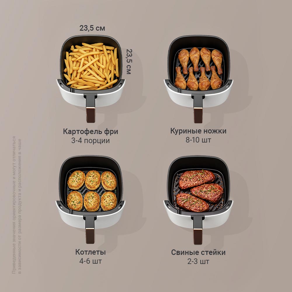 Чаша на 5 литров позволяет приготовить 8–10 куриных ножек, 3–4 порции картофеля фри или 4–6 сочных котлет за один цикл*. Это идеальный объем для семейного ужина или вечеринки с друзьями. Сэкономьте свое время вместе с AG1906.