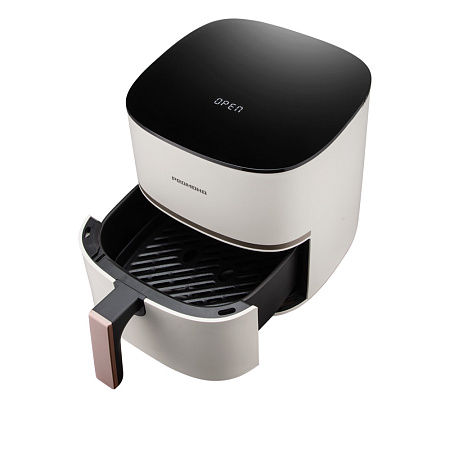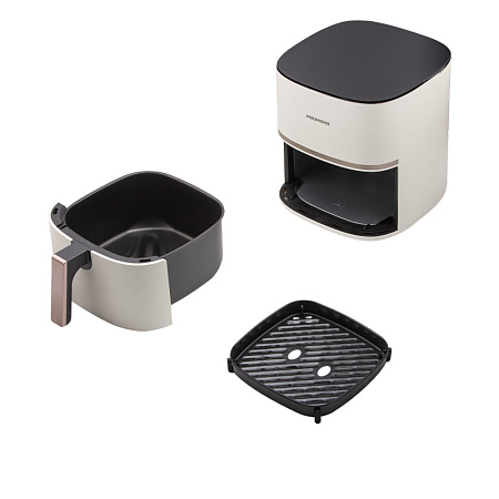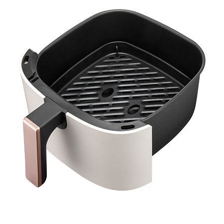 Конструкция аэрогриля продумана для комфорта использования. Основные рабочие элементы — съемная чаша с покрытием Mineral Pro и решетка — легко очистить вручную или поместить в посудомоечную машину. Это решение экономит время и превращает уход в простую задачу.