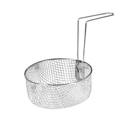 Корзина для приготовления во фритюре изготовлена из высококачественной нержавеющей стали. Удобная ручка отделяется и фиксируется на корзине одним легким движением. Специальный крючок позволяет без труда закрепить корзину на краю чаши, чтобы с приготовленного продукта стекло масло.