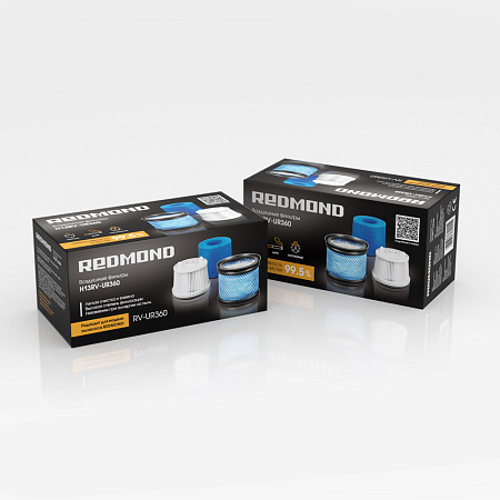 Комплект фирменных фильтров для беспроводного пылесоса REDMOND UR360 включает в себя моторный фильтр и выпускной фильтр тонкой очистки НЕРА Н13.