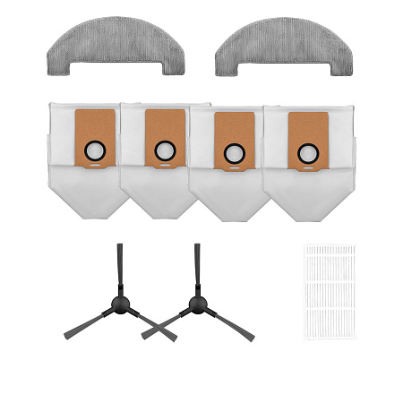 РЕДМОНД AVR5906 — комплект аксессуаров для робота пылесоса VR1326S обеспечит эффективную работу прибора. В набор входят насадки для влажной уборки (2 шт.), боковая щетка (2 шт.), HEPA-фильтр (1 шт.), мешки для сбора пыли (4 шт.) и руководство по обслуживанию и замене.