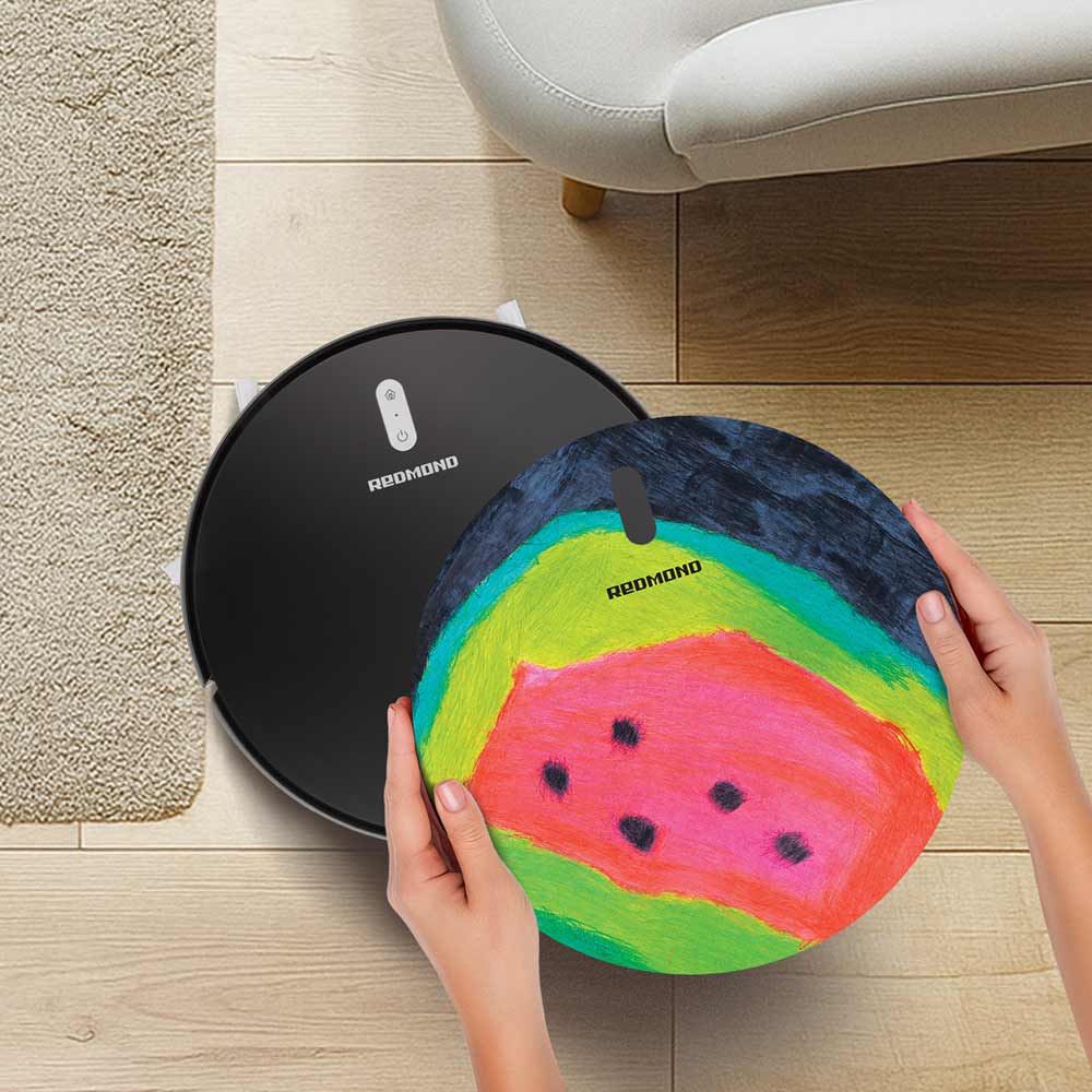VRC1303 — это съемная крышка (техническое решение запатентовано REDMOND*) для робота-пылесоса RV-R630S. Над оригинальным дизайном панели работал художник Виталий Колузаев из арт-центра «Перспективы».