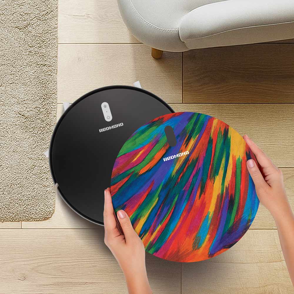 VRC1306 — съемная панель (запатентованное техническое решение*) с необычным дизайном для смарт-робота-пылесоса RV-R630S. Крышка без усилий и устанавливается, и снимается, поэтому менять внешнее оформление устройства легко. Для дизайна серии съемных панелей использованы картины особых художников арт-студии «Перспективы».