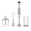 В комплекте вы найдете удобный стакан для смешивания объемом 600 мл — он подходит для приготовления смузи, фрешей, соусов и пюре. Измельчитель с чашей на 500 мл позволяет быстро обработать овощи, зелень, сыр или орехи для салатов, зажарки или начинки.