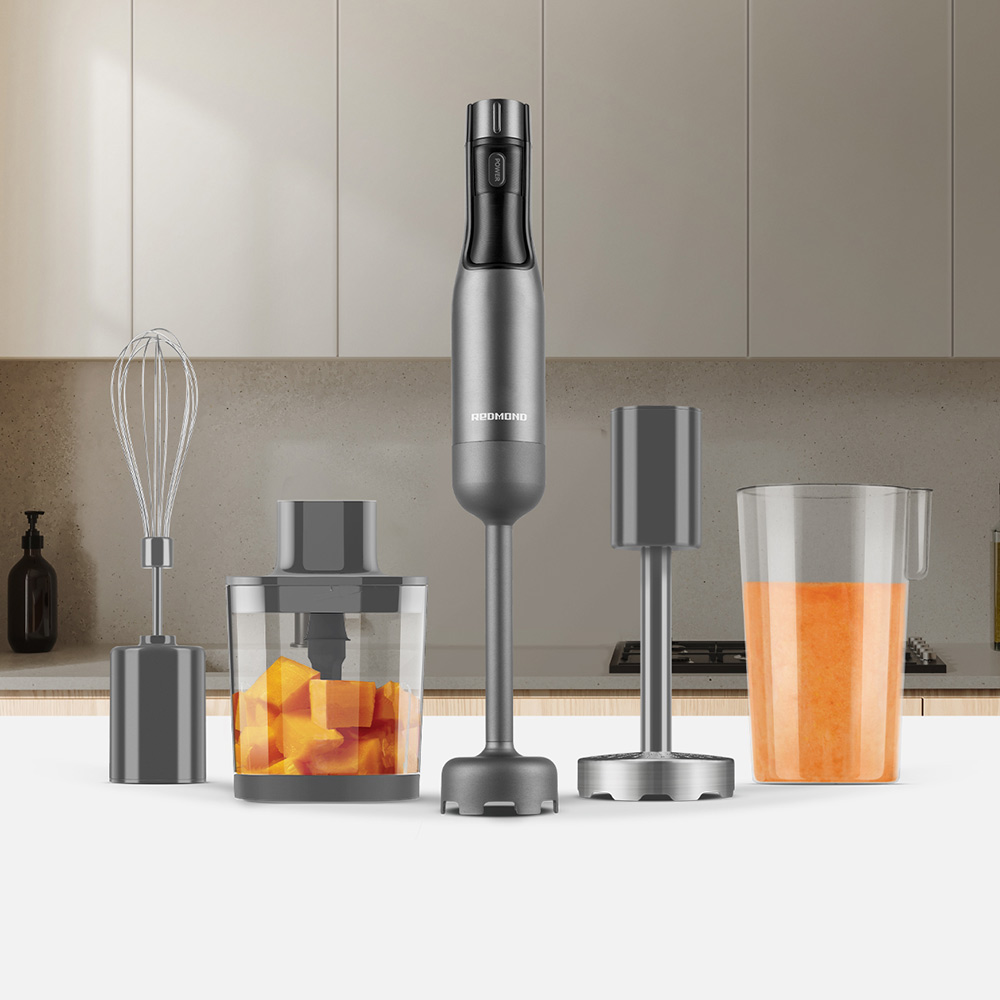 Без блендера в готовке обойтись уже не могу. Где-то надо овощи измельчить, мясо на фрикадельки, пюре сделать, соус и прочее. Нахожу ему применение всегда. Как оказалось, прошлый у меня тоже был от Редмонда, а я даже не обращала внимания. И судя по тому, как долго он прослужил, я могу надеяться вновь на такое хорошее качество. По крайней мере, за три месяца с новым никаких происшествий не произошло. Все насадки исправно выполняют свою задачу, перегревов и сбоев не замечала, отмывается просто. Буду и дальше пользоваться с большим удовольствием этим красавцем." -
