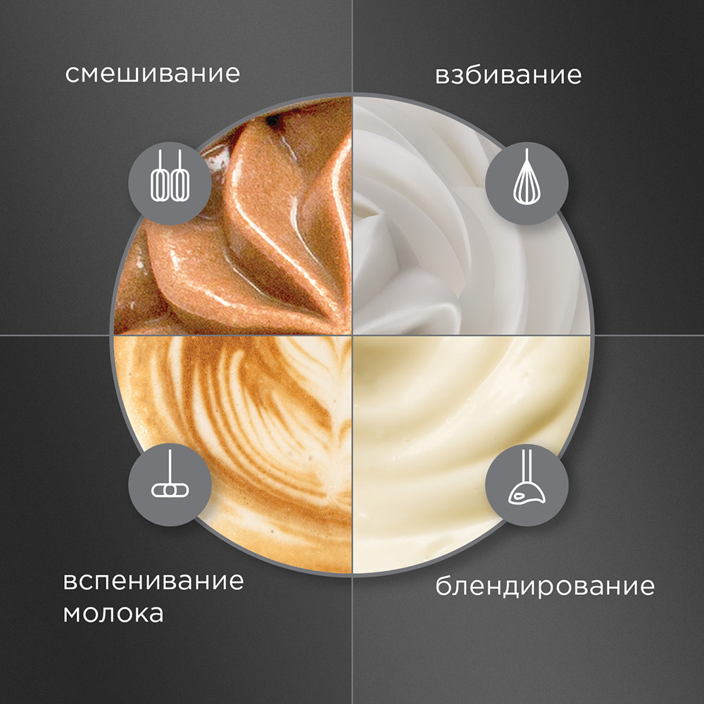 • Погружная насадка поможет приготовить смузи, крем-супы, соусы и паштеты.