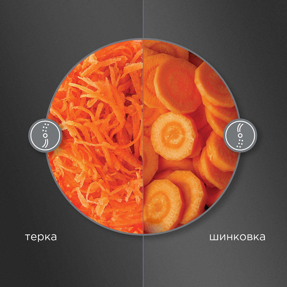 Прибор освободит ваше время. Насадка-терка за 1 минуту натрет кабачок на оладьи, а двусторонняя насадка-шинковка нарежет слайсами сыр и овощи для праздничного стола.