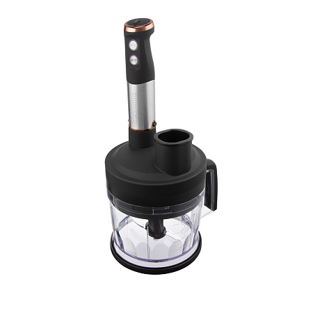 Блендер премиум-класса из коллекции Chrome&Bronze — не только функциональный, но и стильный. Выполнен в металлическом корпусе с бронзовыми вставками и черным покрытием Soft Touch.