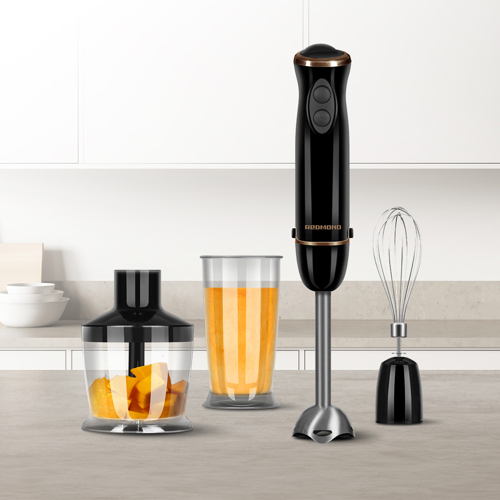 Блендер РЕДМОНД BH409 — стильный и универсальный прибор, который заменит такие устройства, как миксер, блендер и измельчитель. Готовьте с ним молочные коктейли, фруктовые и овощные смузи, жидкое тесто для блинов и пюре для детского питания. Благодаря высокой мощности устройство справится с любыми задачами на кухне.
