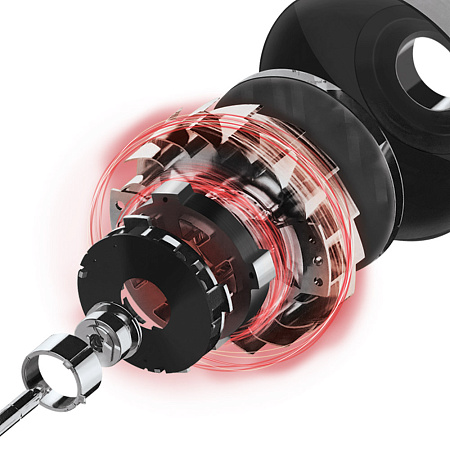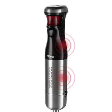 Обрабатывая продукты, вы можете ускорить работу блендера с 8 100 до 14 100 об/мин. Регулировка скорости осуществляется кнопкой включения: чем сильнее вы нажимаете кнопку, тем выше скорость. О том, насколько изменилась скорость, укажет индикатор на рукоятке прибора.