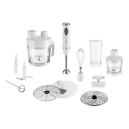 Насадка-венчик взбивает яйца и сливки для пышных кремов, муссов и суфле. В комплект входит стакан с крышкой (600 мл), в котором можно аккуратно смешивать и взбивать жидкие ингредиенты блендером и венчиком.