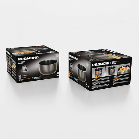 RB-A505 – универсальная чаша для мультиварки РЕДМОНД RMC-M37. Объем чаши – 5 литров, в ней удобно готовить как небольшое количество еды, так и несколько порций для всей семьи.
