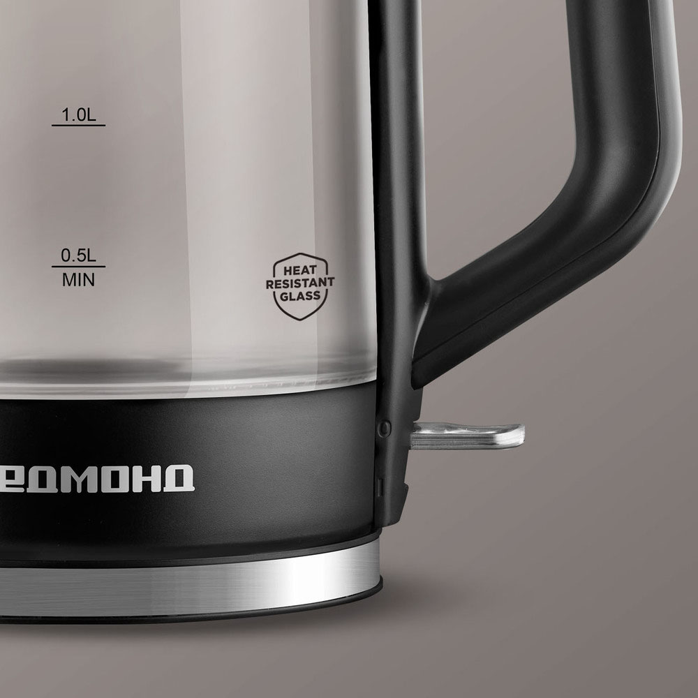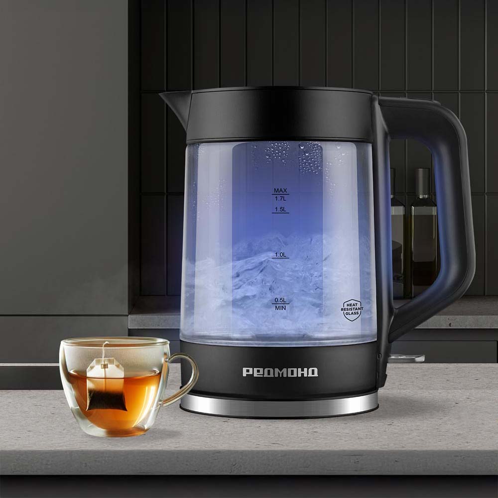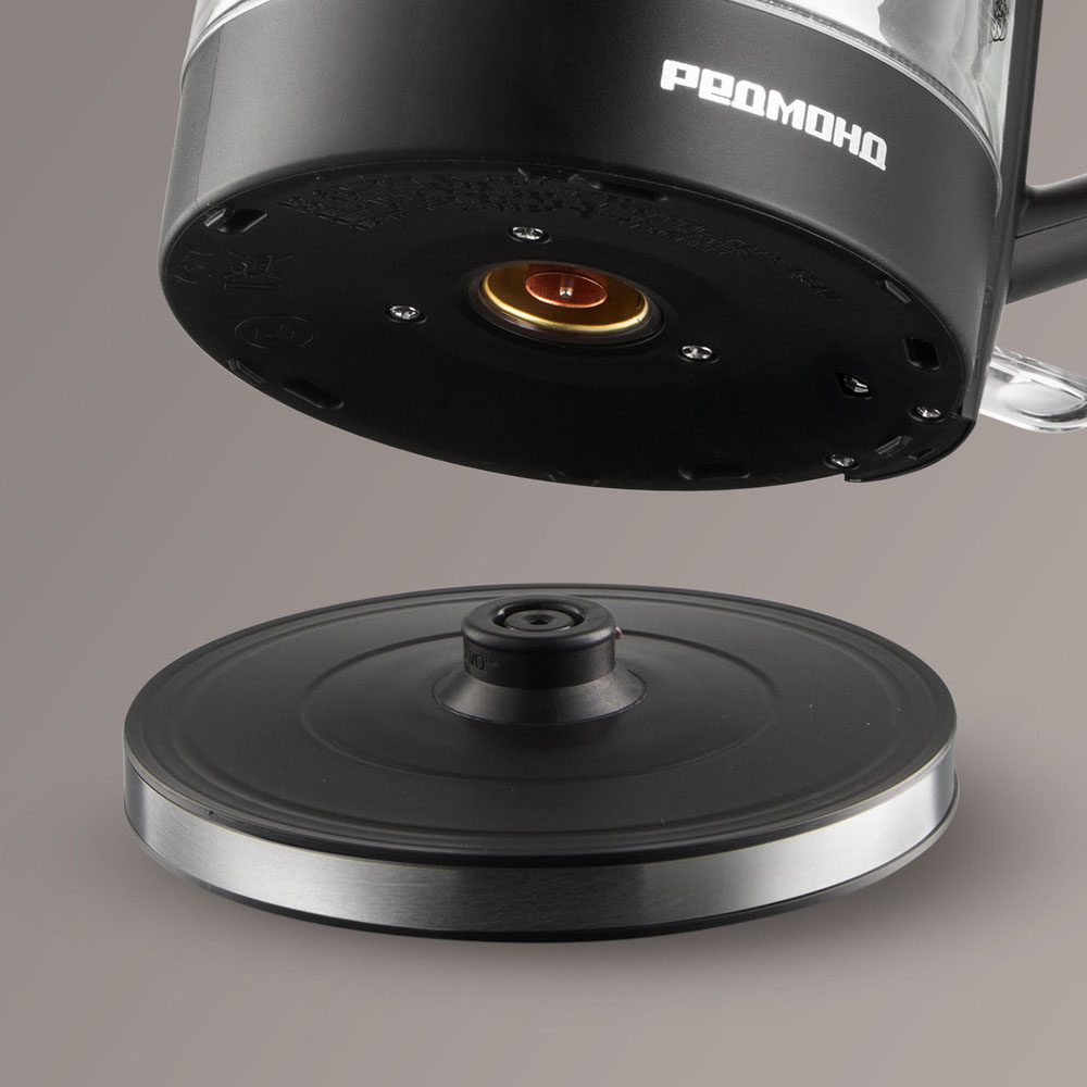 РЕДМОНД KG250 — современный электрический чайник объемом 1,7 л. Колба изготовлена из жаропрочного стекла: оно устойчиво к регулярным перепадам температуры и не меняет вкус воды. Яркая LED-подсветка колбы сделает KG250 устройство стильным дополнением любой кухни. Благодаря широкой горловине прибор удобно вымыть и наполнить водой.