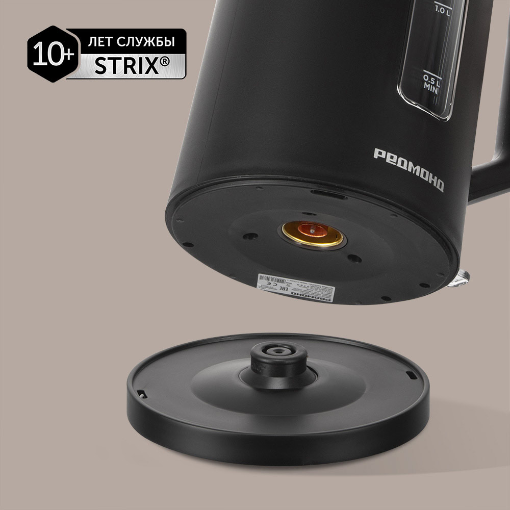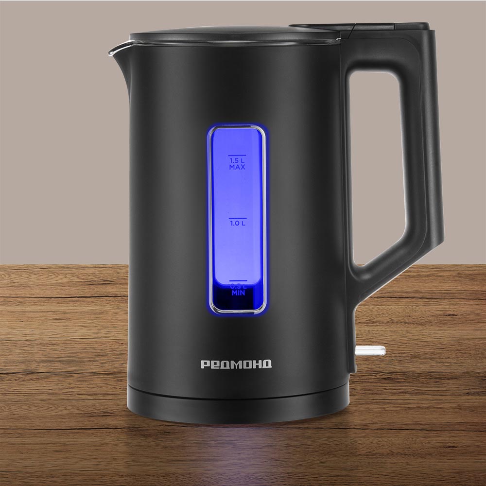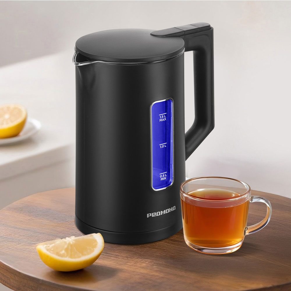 РЕДМОНД KG255 — стильный чайник со стеклянной внутренней колбой, оснащенной LED-подсветкой. Объема 1,5 л хватит для горячих напитков на семью из 3–4 человек. Функция автоотключения делает использование чайника максимально безопасным.