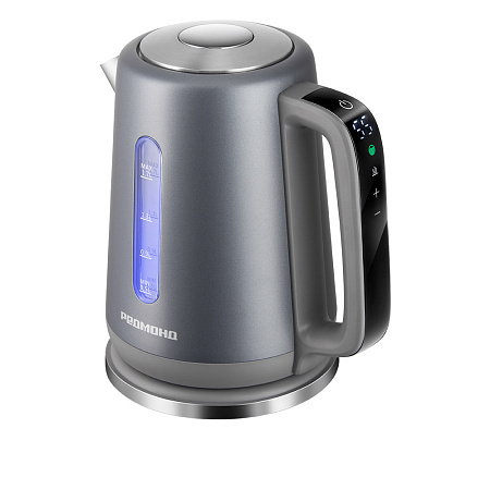 РЕДМОНД KM238 — стильный и надежный чайник. Изготовлен из нержавеющей стали, поэтому можно не беспокоиться о поломке корпуса. Ручка устройства дополнена сенсорной панелью: задать настройки автоподогрева с кипячением можно в одно касание.