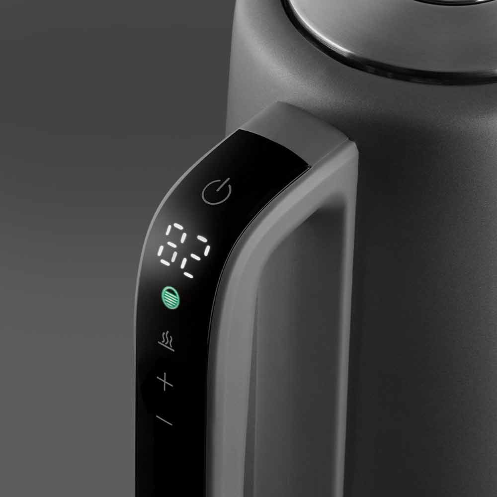 РЕДМОНД KM238 — стильный и надежный чайник. Изготовлен из нержавеющей стали, поэтому можно не беспокоиться о поломке корпуса. Ручка устройства дополнена сенсорной панелью: задать настройки автоподогрева с кипячением можно в одно касание.