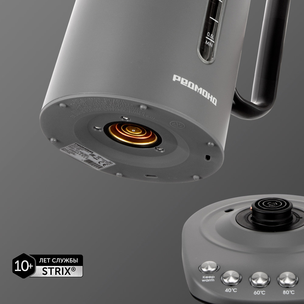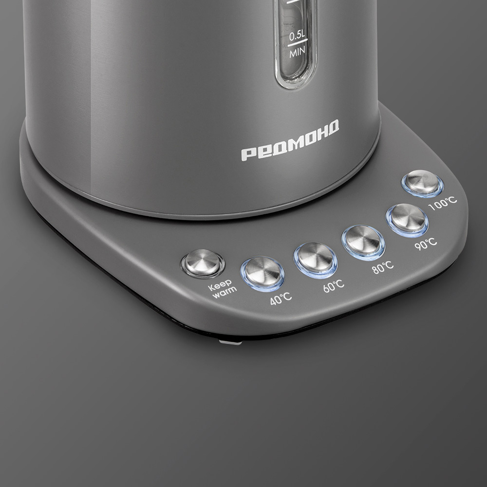 Чайник РЕДМОНД KM241 поможет приготовить чай разных сортов благодаря 5 температурным режимам. Устройство сохранит воду горячей при помощи функции поддержания температуры. Вы можете с легкостью установить настройки при помощи кнопок управления на базе. А фильтр от накипи и съемная крышка облегчат уход за чайником.
