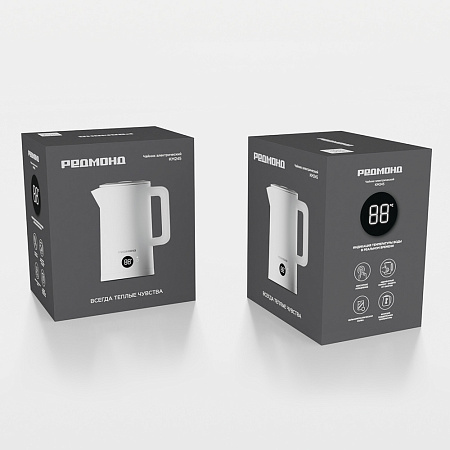 РЕДМОНД KM245 — чайник в современном дизайне с сенсорным управлением и функцией поддержания тепла. Адиабатный корпус с двойными стенками не нагревается снаружи, предотвращая случайные ожоги. Модель позволяет выбрать необходимую температуру нагрева из 5 представленных режимов.