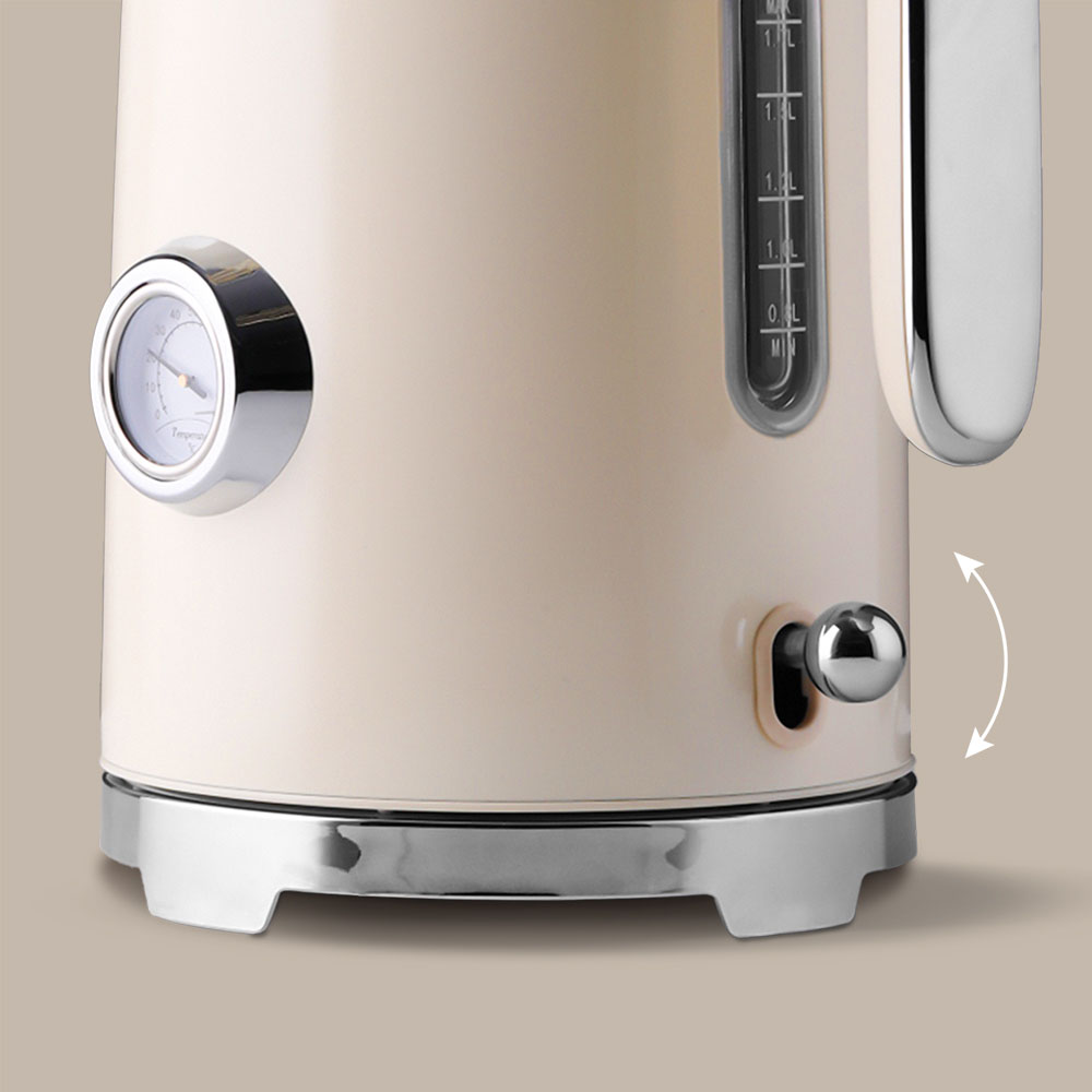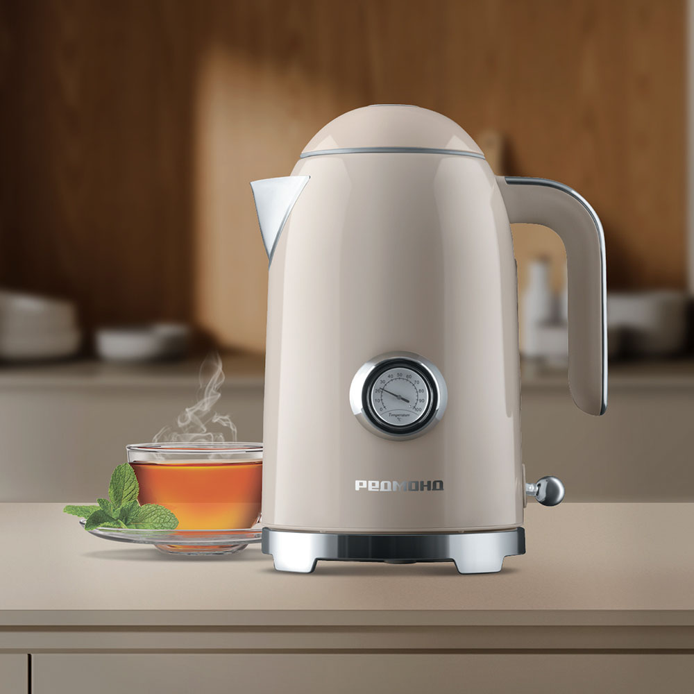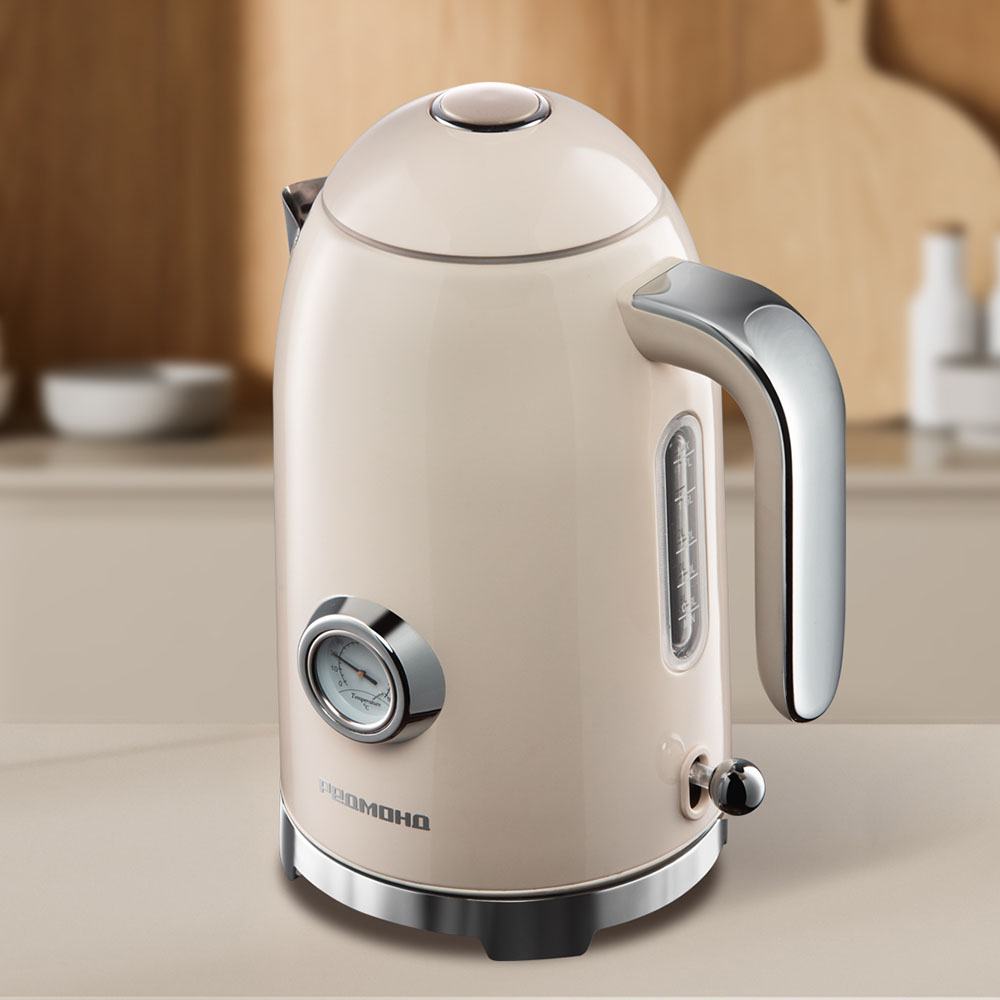 Чайник РЕДМОНД KM247 выполнен в стиле ретро и понравится тем, кто ценит эстетику в мелочах. Благодаря плавным линиям корпуса и лаконичному бежевому оттенку он отлично впишется в интерьер кухни.