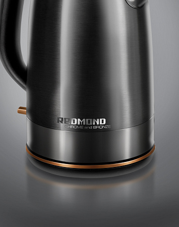 Электрический чайник REDMOND RK-CBM146 — эксклюзивная и супермощная новинка в лаконичном дизайне из модной серии CHROME and BRONZE. Словно монолит, корпус из нержавеющей стали, большая удобная ручка, широкий носик, дисковый нагревательный элемент и светодиодный индикатор будут ежедневно вызывать только положительные эмоции.