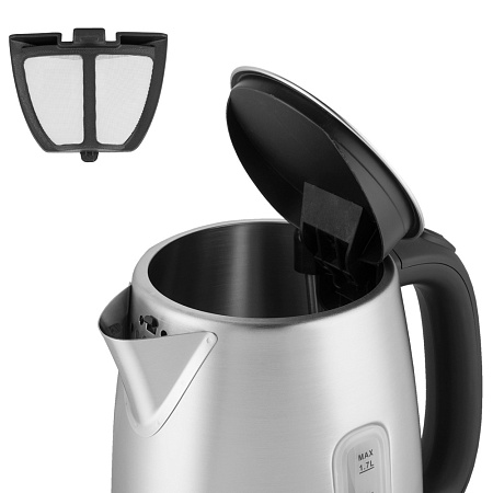 От появления накипи и налета не застрахован ни один чайник, особенно если вы кипятите в нем преимущественно водопроводную воду. Инженеры предусмотрели эту трудность и оснастили M155 фильтром защиты от накипи. Прежде чем попасть к вам в кружку, вода проходит через мелкоячеистую сетку, которая очищает жидкость. Если фильтр загрязнится, его можно будет легко снять и промыть под проточной водой.