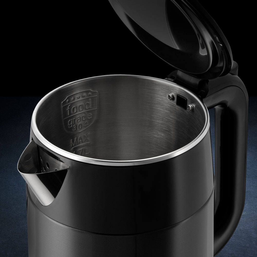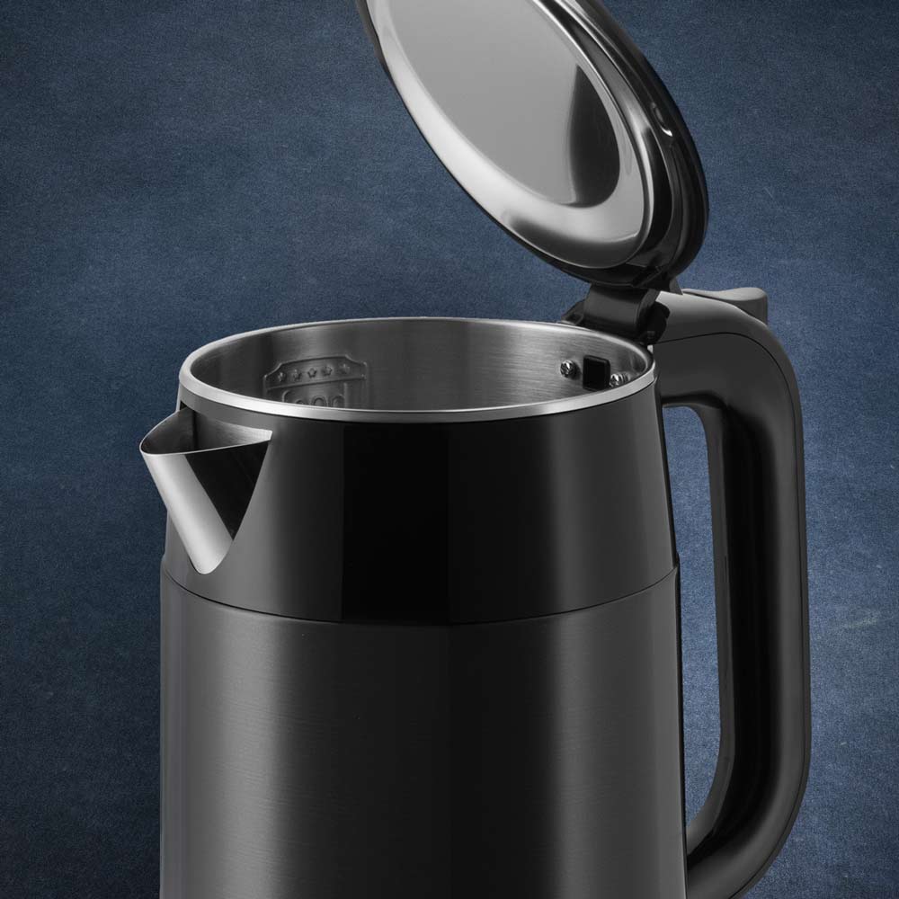 20.02.2025Долго искал черный и не пластиковый чайник и нашел эту модель. Сразу понравился. Красивый, выглядит надежным,с двойными стенками, внутри бесшовная колба из металла, снаружи адиабат. Благодаря такой конструкции долго сохраняет температуру и исключет риск обжечся о корпус.