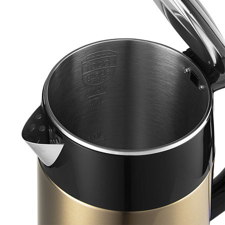 Чайник РЕДМОНД RK-M1582 — современный прибор для кипячения воды в корпусе цвета шампань. Подойдет для любого интерьера и семьи из 5–6 человек. Объем 1,7 л. Удобно набирать и мыть благодаря широкой горловине. Контактная группа STRIX® обеспечит долгий срок службы без поломок и перегрева и позволит вращать чайник на 360°.