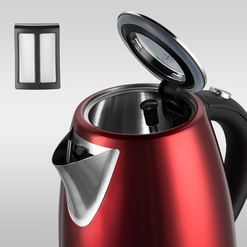РЕДМОНД RK-M1791 — вместительный прибор для кипячения воды на 1,7 литра с ярким дизайном. Чайник в металлическом корпусе красного цвета станет стильным элементом кухонного интерьера.
