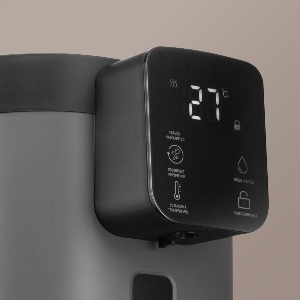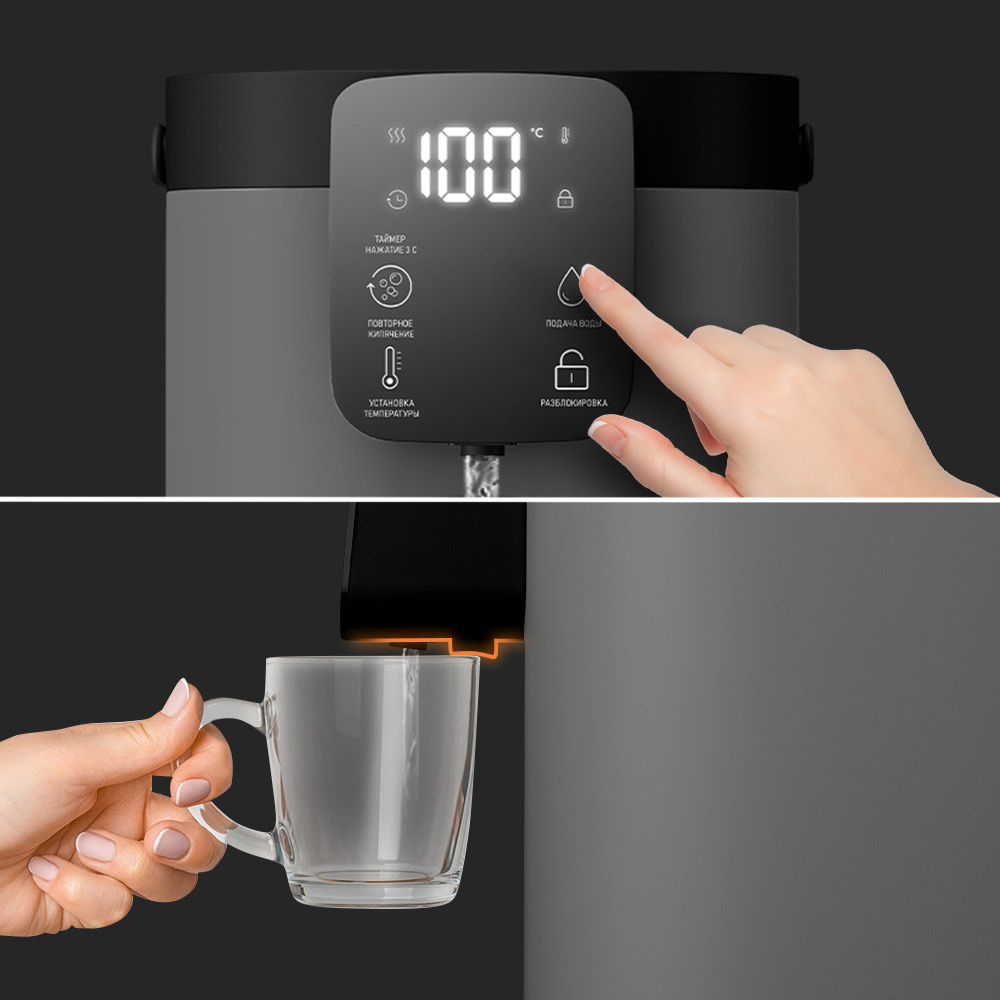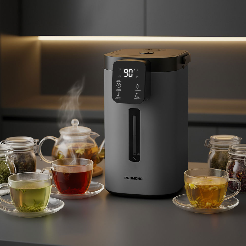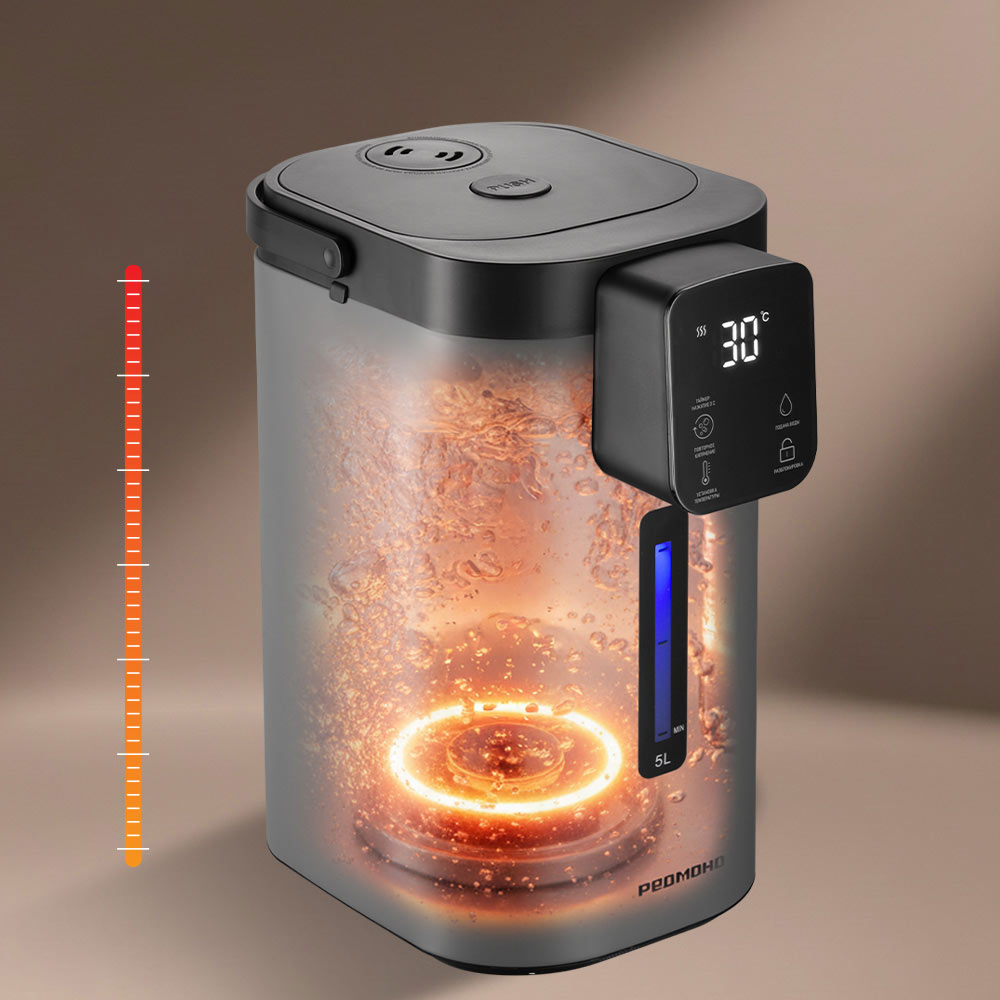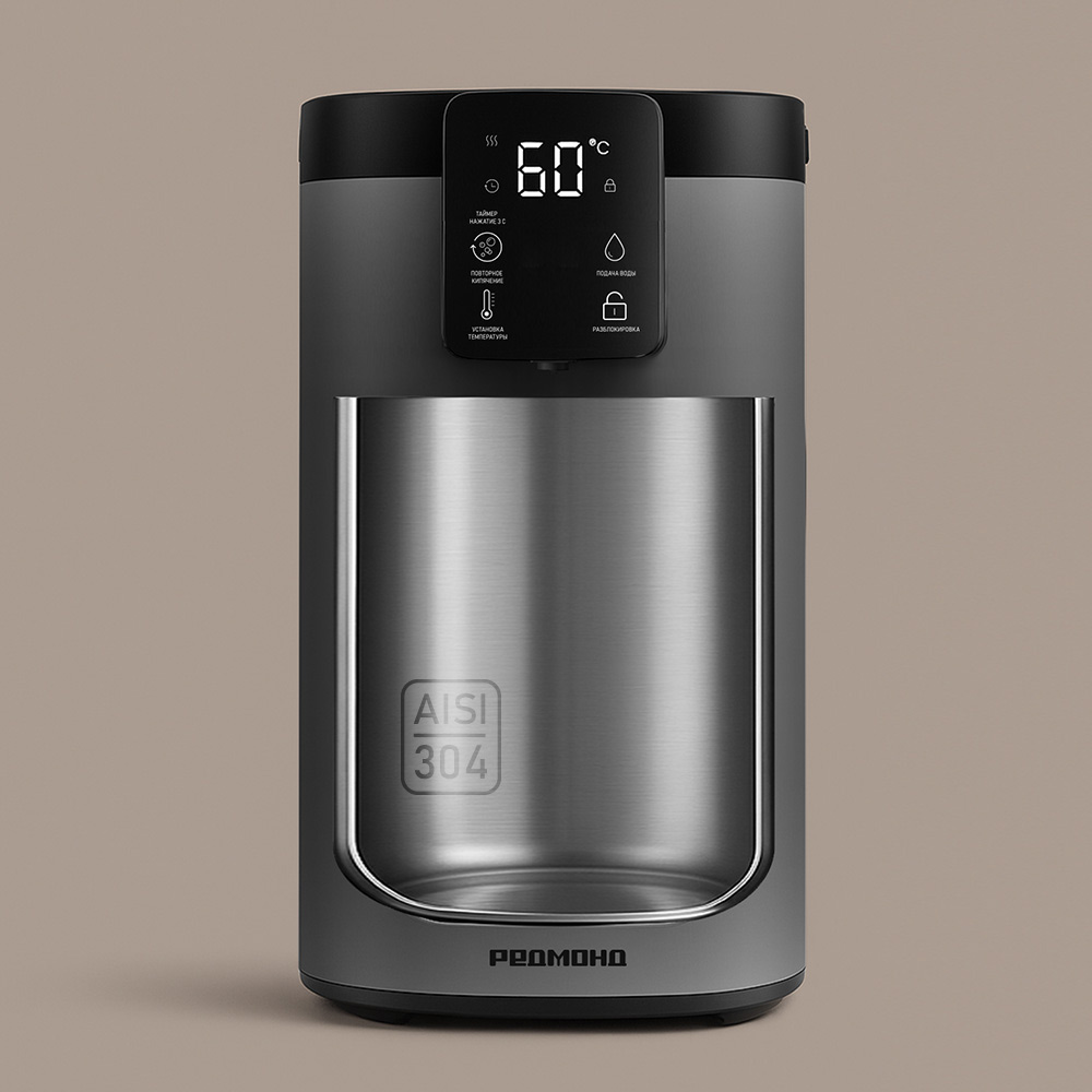 Термопот РЕДМОНД TP2301 на 5 литров в минималистичном металлическом корпусе с сенсорным управлением. Предлагает 11 температурных режимов, поддерживает заданную температуру до 12 часов и максимально удобен в использовании. Идеально подходит для приготовления любимых горячих напитков.