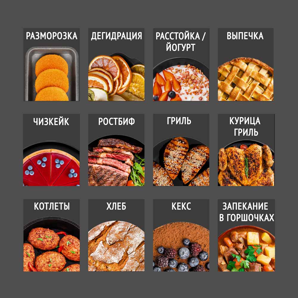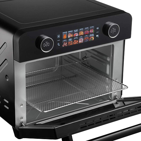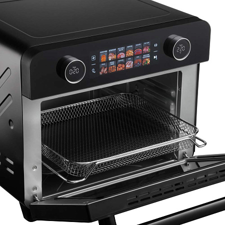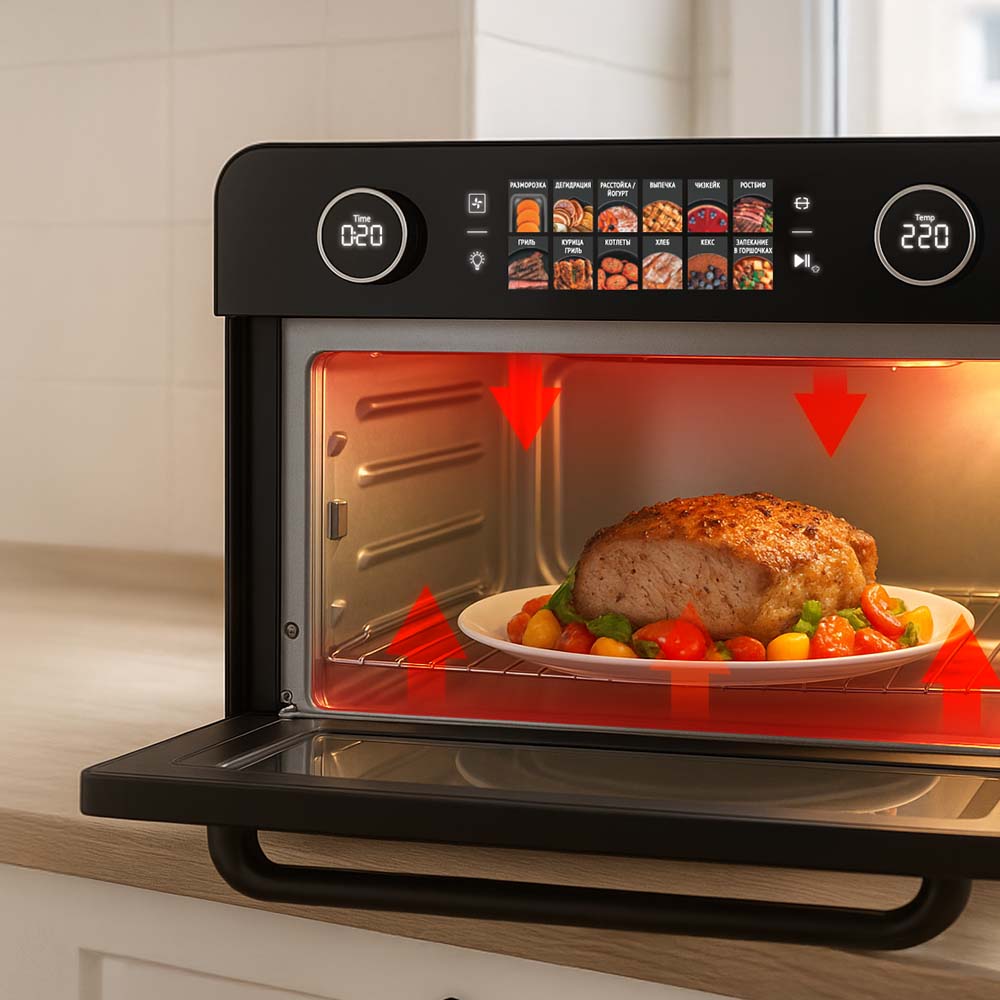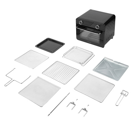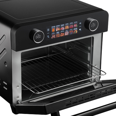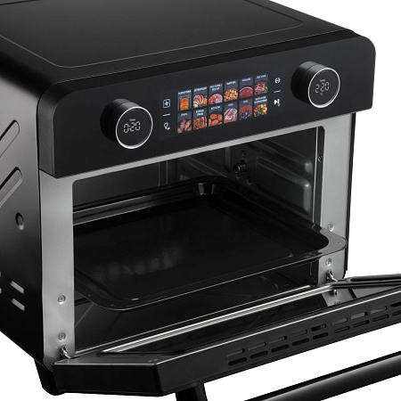 Шкаф духовой РЕДМОНД OV2100 с функциями аэрогриля и дегидратора. Прибор оснащен функцией гриля и вертелом. Мультиконвекция равномерно распределяет горячий воздух, благодаря чему продукты получаются хрустящими снаружи и мягкими внутри. В комплект входят 3 решетки для сушки фруктов, овощей и трав. Устройство имеет 12 автоматических режимов и ручную настройку температуры (35–230 °C) и времени (до 9,5 часов). Предусмотрены режимы верхнего, нижнего и комбинированного нагрева. Объем камеры — 25 литров, что делает модель подходящей для всей семьи при компактных габаритах корпуса.