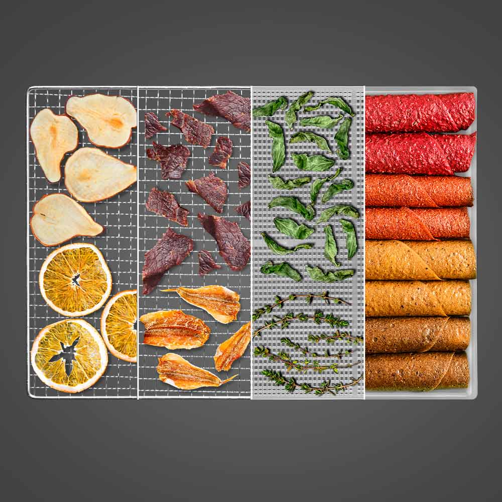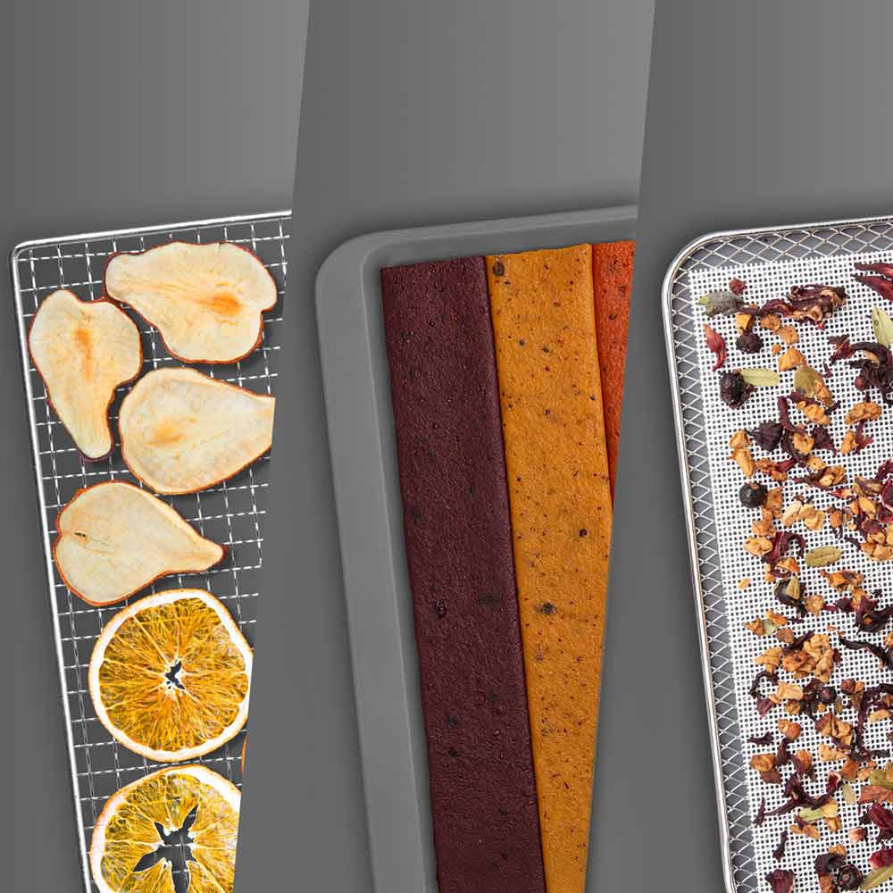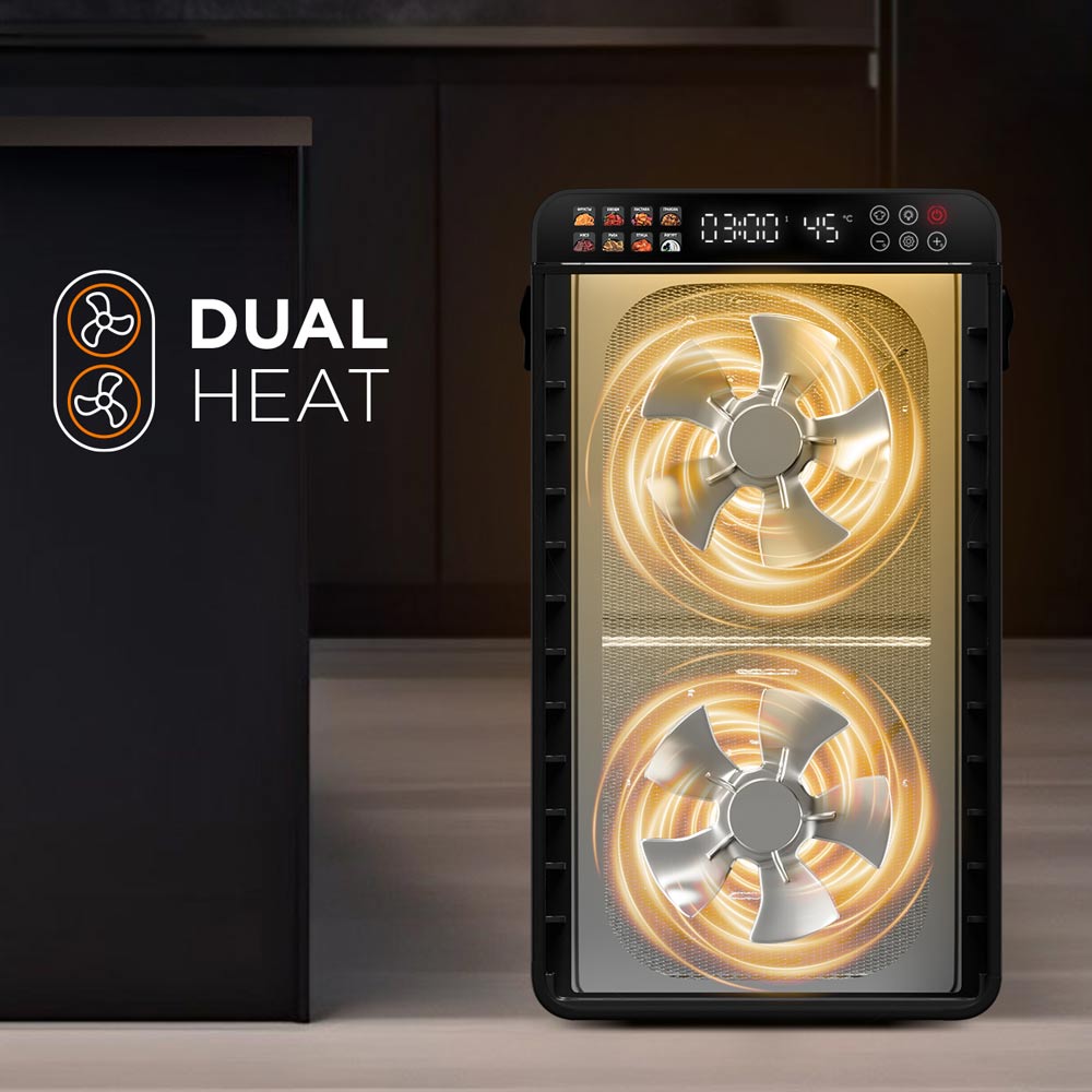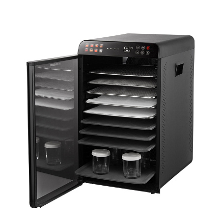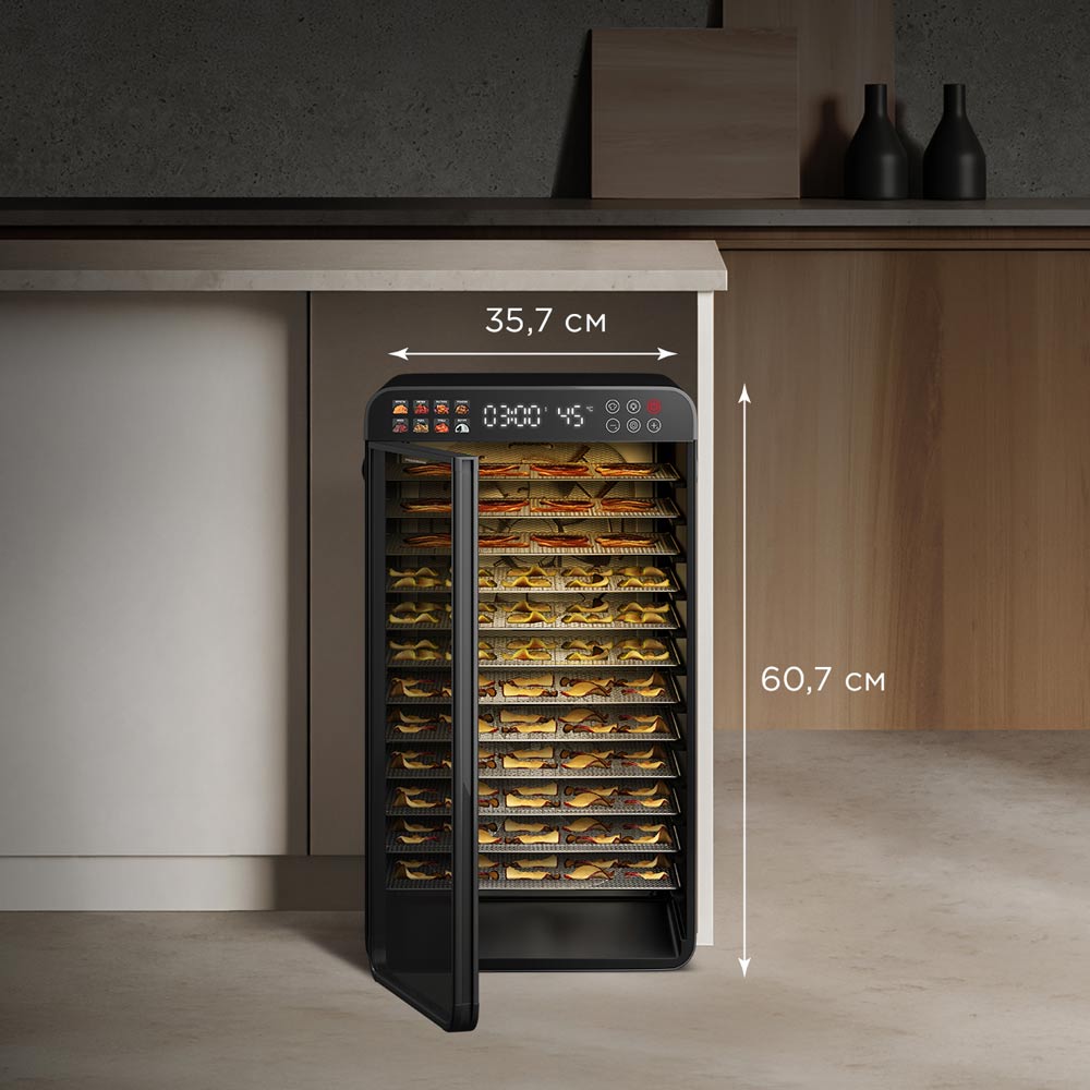 РЕДМОНД FD1104 — вместительный и технологичный дегидратор для бережной сушки овощей, фруктов, грибов и ягод, а также приготовления пастилы, вяленого мяса, рыбы и домашнего йогурта. Благодаря мощности 1100 Вт, 12 уровням сушки и системе DUALHEAT с двойным горизонтальным обдувом продукты равномерно высушиваются, сохраняя вкус, аромат и витамины. Цветной сенсорный дисплей и 8 автоматических программ делают работу интуитивной, а корпус из нержавеющей стали и продуманный дизайн гарантируют надежность и удобство.