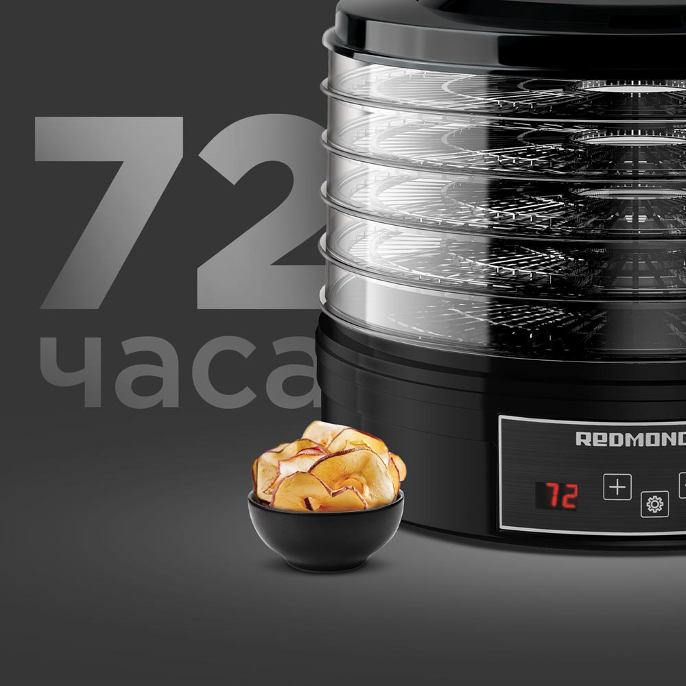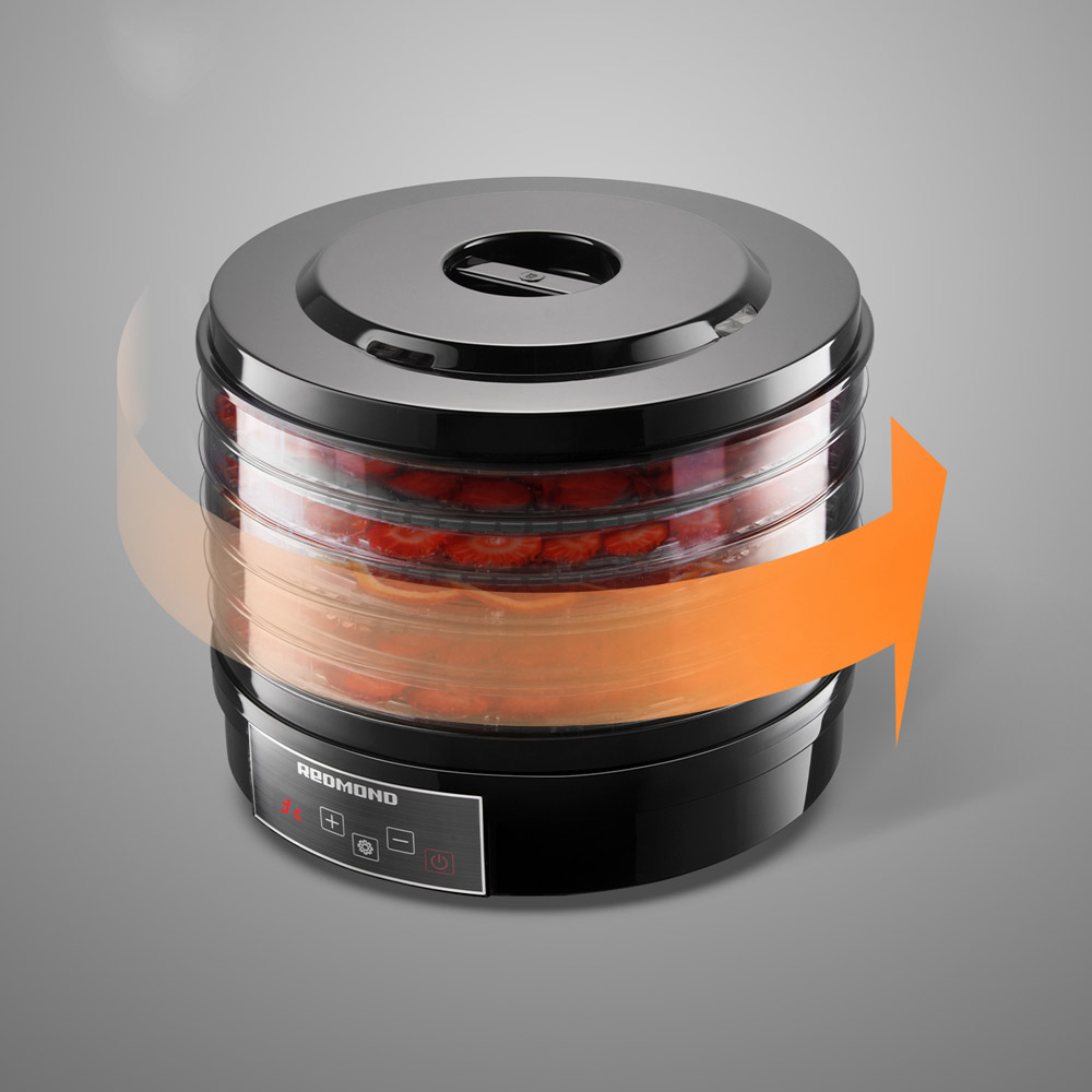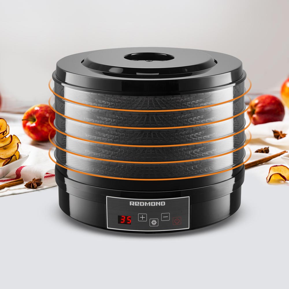 Сушилка РЕДМОНД FD1100 – надежное устройство, которое сушит фрукты и овощи, готовит пастилу и другие натуральные и полезные блюда. В комплекте 5 перфорированных поддонов и 1 сплошной.