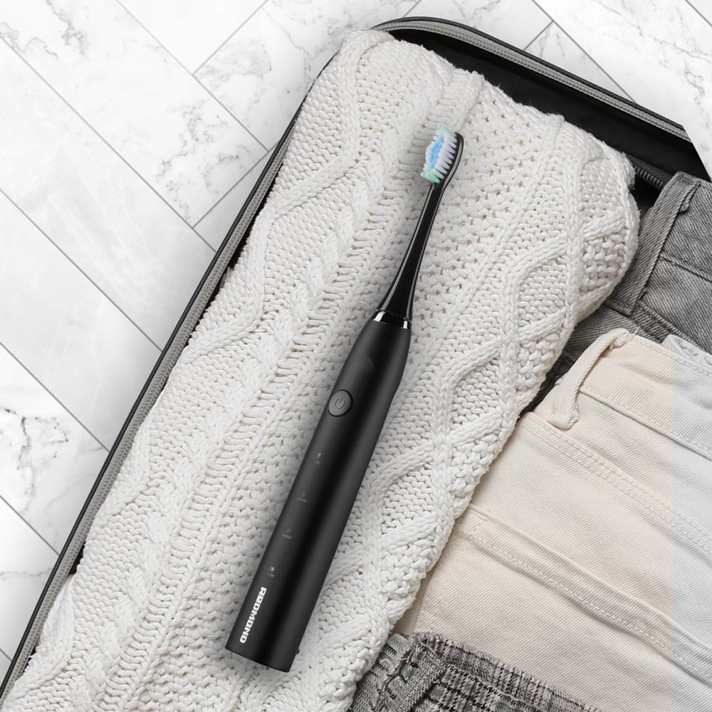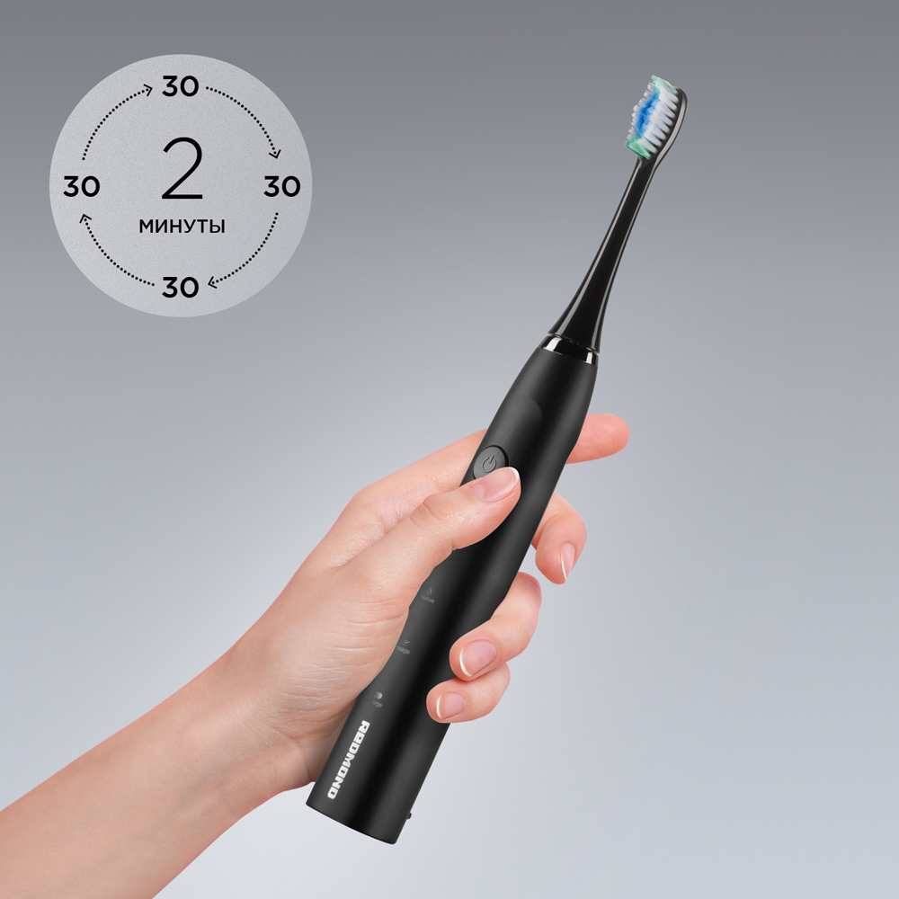 Зубная щетка РЕДМОНД ТВ4601 — компактное устройство в корпусе черного цвета для тщательной гигиены полости рта по принципам доказательной медицины. В щетку встроен таймер на 2 минуты, который напоминает о смене зоны через 30 секунд, а заряда аккумулятора хватает на 1 месяц работы без подзарядки.