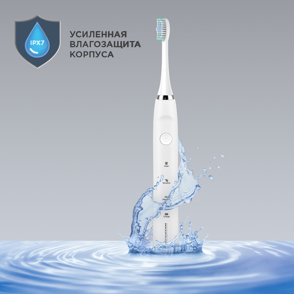 Зубная щетка РЕДМОНД ТВ4601 — компактное устройство в корпусе белого цвета для тщательной гигиены полости рта по принципам доказательной медицины. В щетку встроен таймер на 2 минуты, который напоминает о смене зоны через 30 секунд, а заряда аккумулятора хватает на 1 месяц работы без подзарядки.