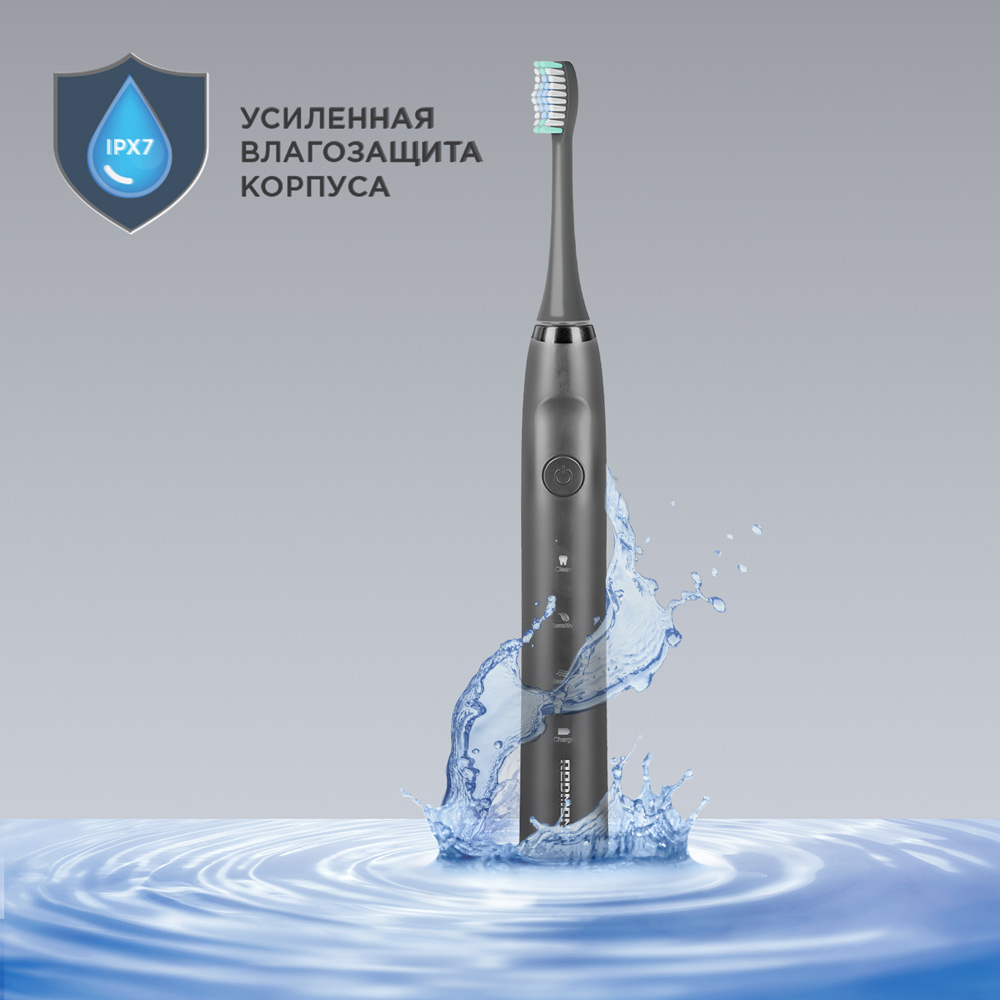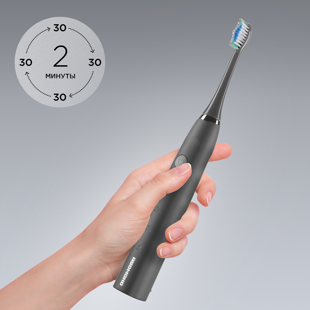 Зубная щетка РЕДМОНД ТВ4601 — компактное устройство в корпусе серого цвета для тщательной гигиены полости рта по принципам доказательной медицины. В щетку встроен таймер на 2 минуты, который напоминает о смене зоны через 30 секунд, а заряда аккумулятора хватает на 1 месяц работы без подзарядки.