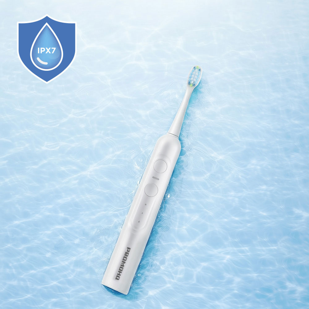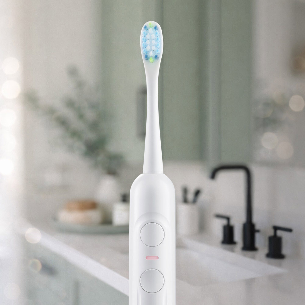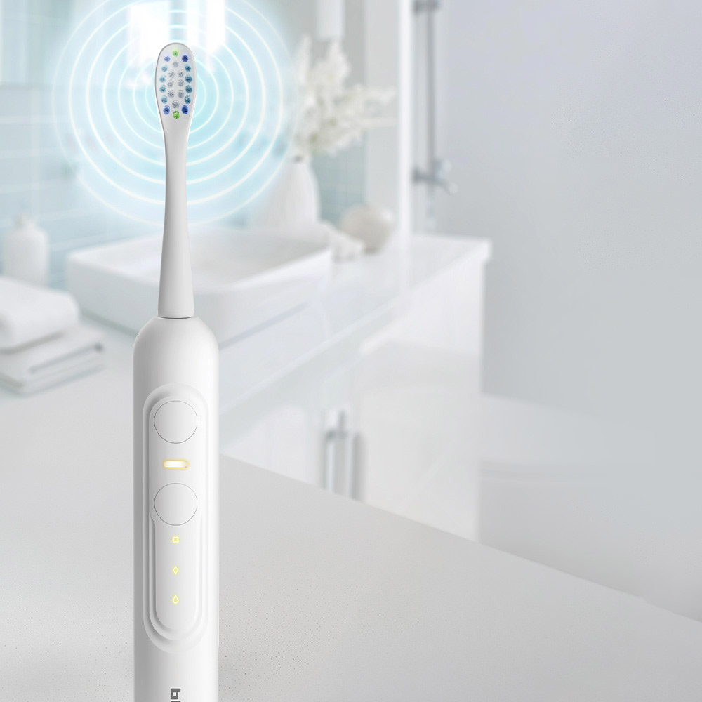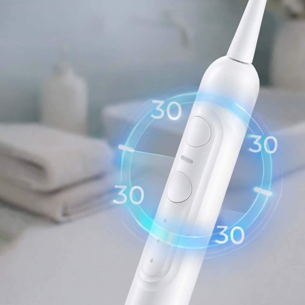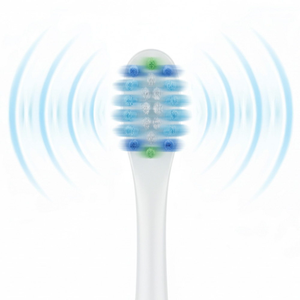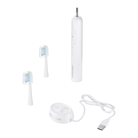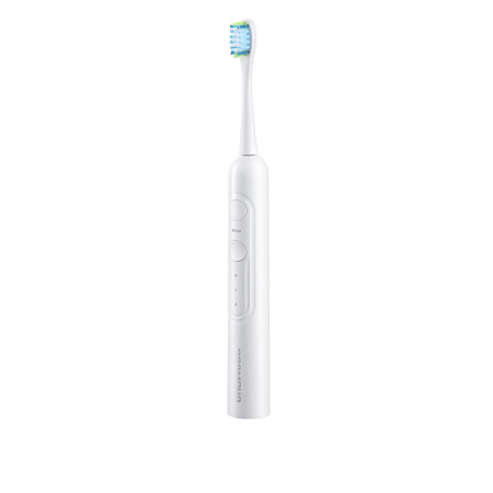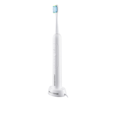 РЕДМОНД TB4604 — звуковая зубная щетка с технологией двойного очищения для бережного и эффективного ухода каждый день. До 33 280 микропульсаций в минуту совместно с мягкими выметающими движениями разрушают и качественно удаляют налет. Такой метод помогает очищать межзубные промежутки и пришеечную область, где обычная щетка часто не справляется. Модель оснащена 5 режимами: стандартным, бережным, уходом за деснами, отбеливанием и полировкой. Таймер рассчитан на 2 минуты работы с интервалами по 30 секунд — это помогает соблюдать рекомендованное время чистки. Компактная головка облегчает доступ ко всем участкам зубного ряда, а премиальная щетина DuPont работает мягко и точно. Корпус защищен от влаги по стандарту IPX7, нескользящая рукоять обеспечивает уверенный хват. Одной зарядки хватает до 3 месяцев использования.