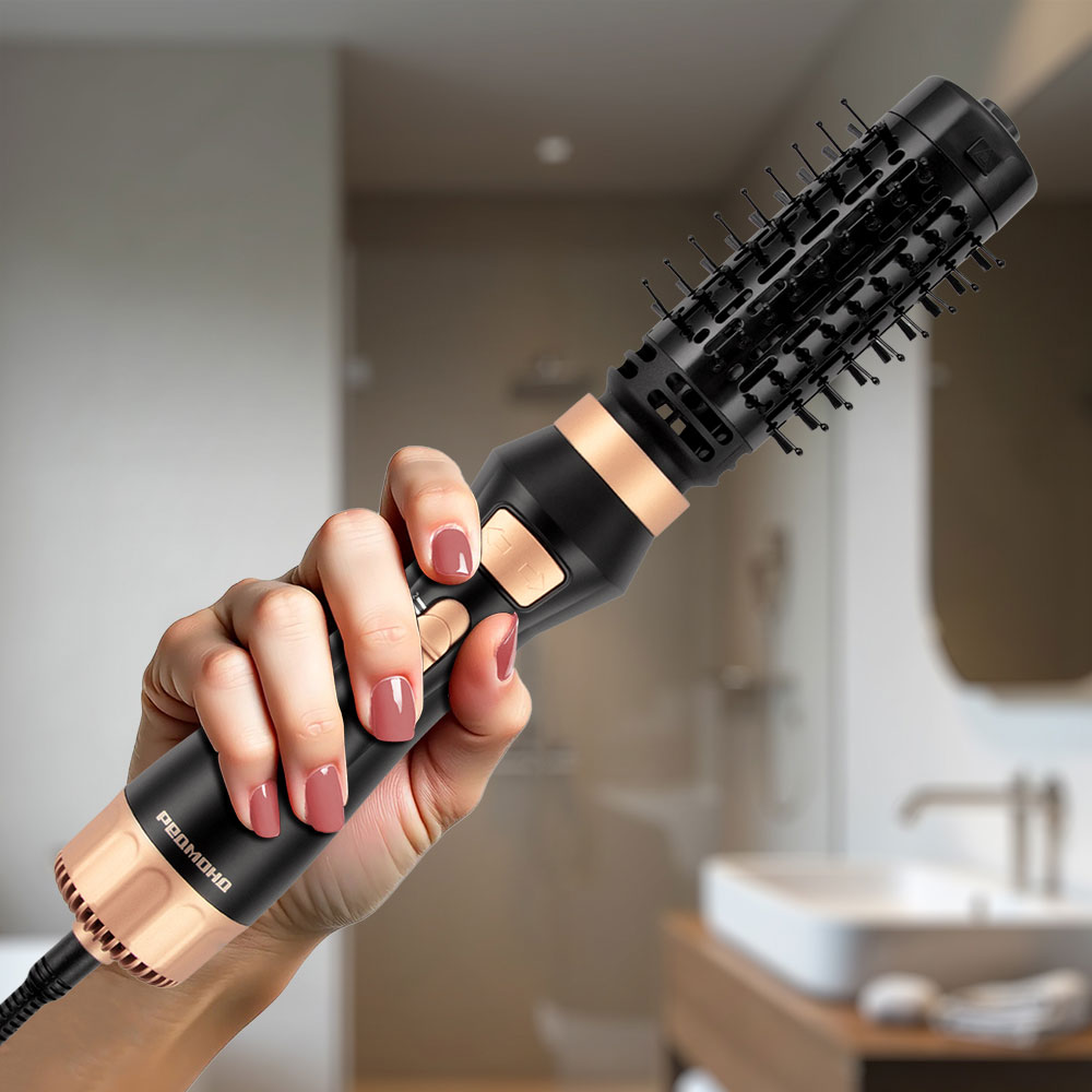 РЕДМОНД HD1730 — фен-стайлер, который одновременно сушит и укладывает волосы. Достаточно нажать кнопку, чтобы изменить направление вращения насадки. Комбинированные щетинки и три режима скорости обеспечивают быстрый и впечатляющий результат. В комплекте две насадки — для длинных и средних волос.