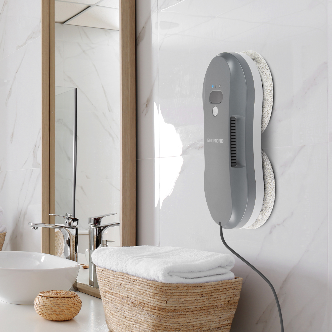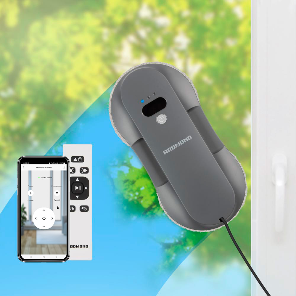 РЕДМОНД W2400S — умный робот-мойщик нового поколения, созданный для автоматической и деликатной очистки стеклянных и кафельных поверхностей. Устройство оснащено системой AutoSpray с двойным распылением, которая обеспечивает оптимальное увлажнение и безупречное качество уборки без разводов. Алгоритмы навигации автоматически определяют границы поверхности, позволяя роботу тщательно обработать участок любой сложности — от широких панорамных стекол до зеркал и душевых перегородок. Тонкий корпус всего 7 см делает модель универсальной для разных типов конструкций. Встроенный резервный аккумулятор и страховочный трос отвечают за безопасность работы на высоте, а управление через приложение REDMOND Home раскрывает полный функционал устройства. W2400S объединяет мощность, автономность и точность — это профессиональный уровень чистоты в компактном формате.