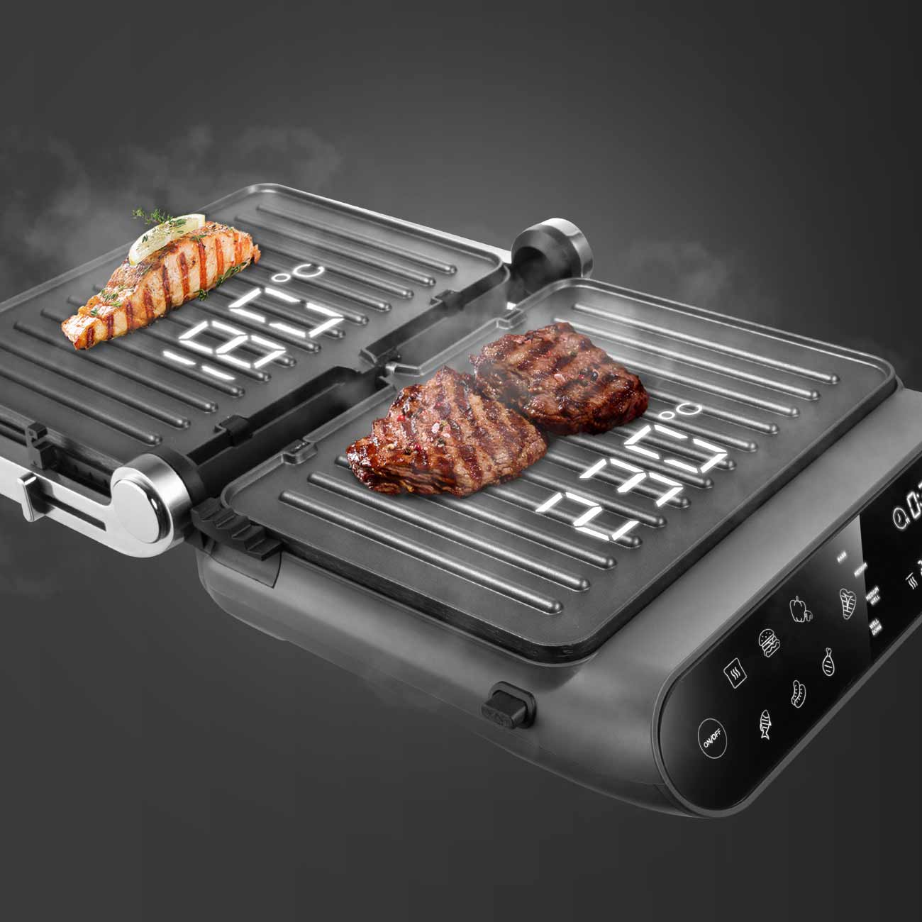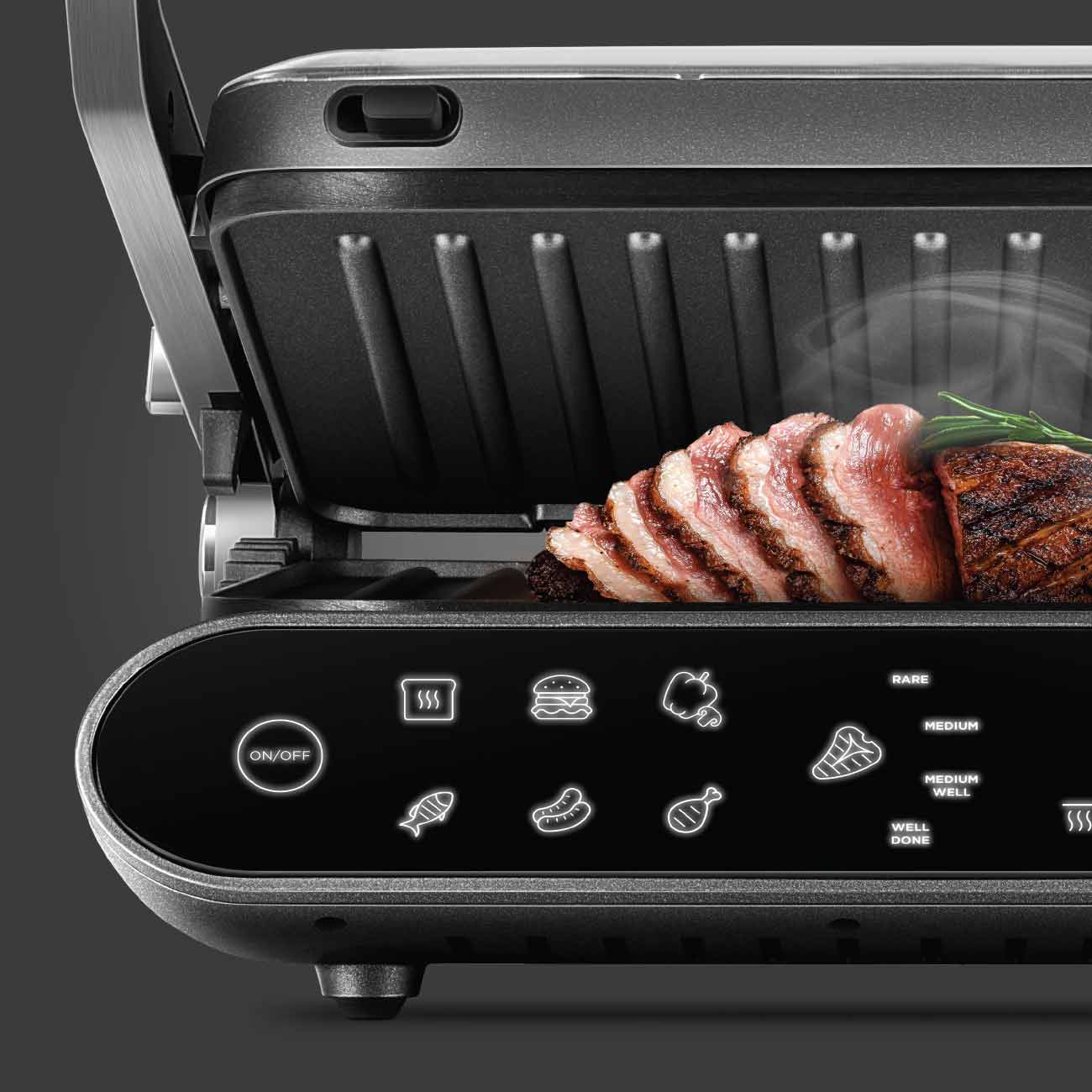 Гриль оснащен автоматическими программами (разогрев, приготовление котлет и бургеров, овощей, рыбы, сосисок, птицы, стейков), которые позволят сделать практически любое блюдо. Теперь не нужно обладать навыками шеф-повара, чтобы готовить как в ресторане.