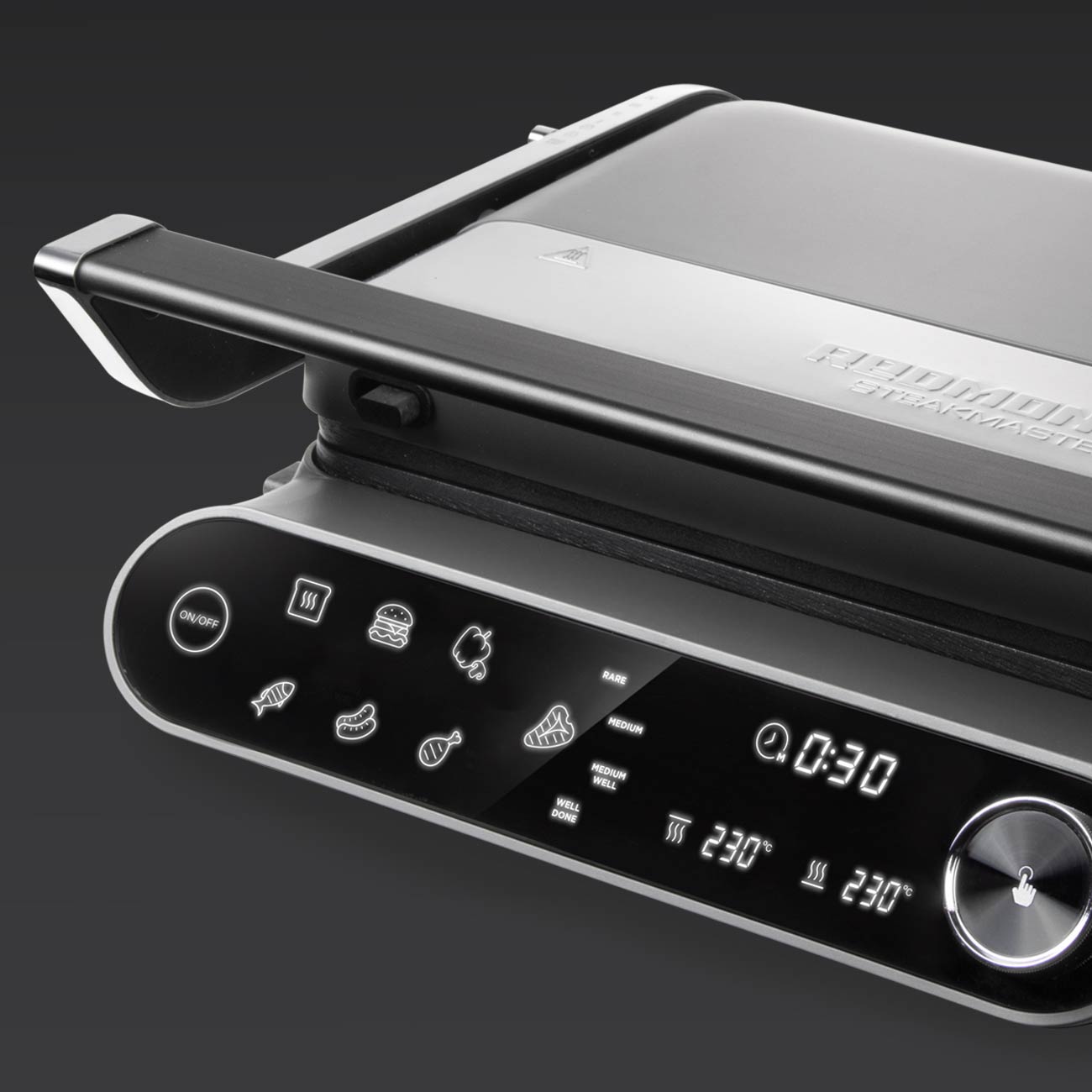 Гриль РЕДМОНД GM303 заменит сразу 3 устройства и позволит приготовить полноценный ужин на всю семью. Делайте закуски, готовьте несколько блюд одновременно, жарьте сочные стейки: прибор поможет раскрыть кулинарный талант даже тем, кто редко становится за плиту. А интуитивно понятная сенсорная панель и крупные иконки позволят с легкостью разобраться в настройках.