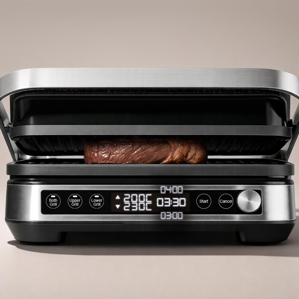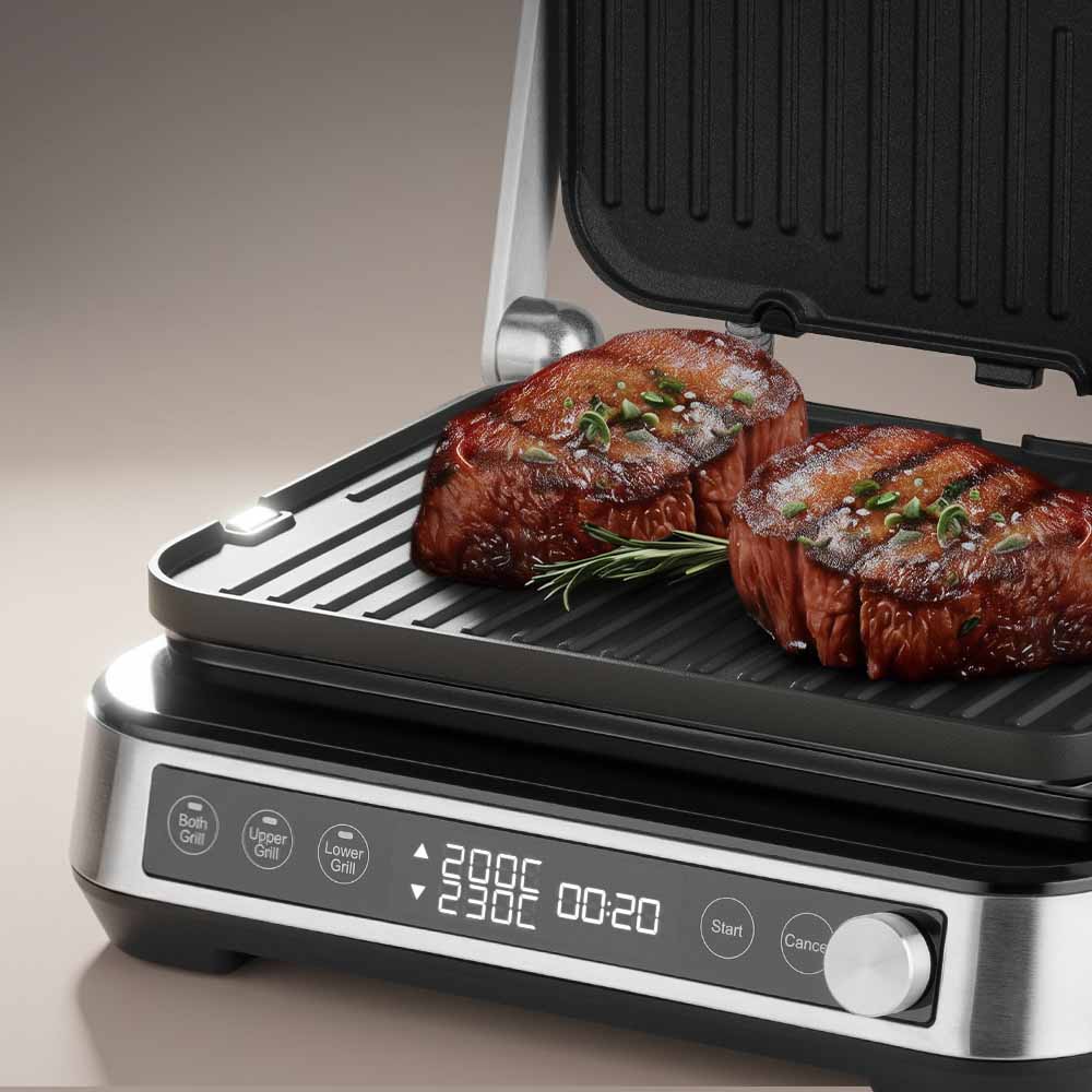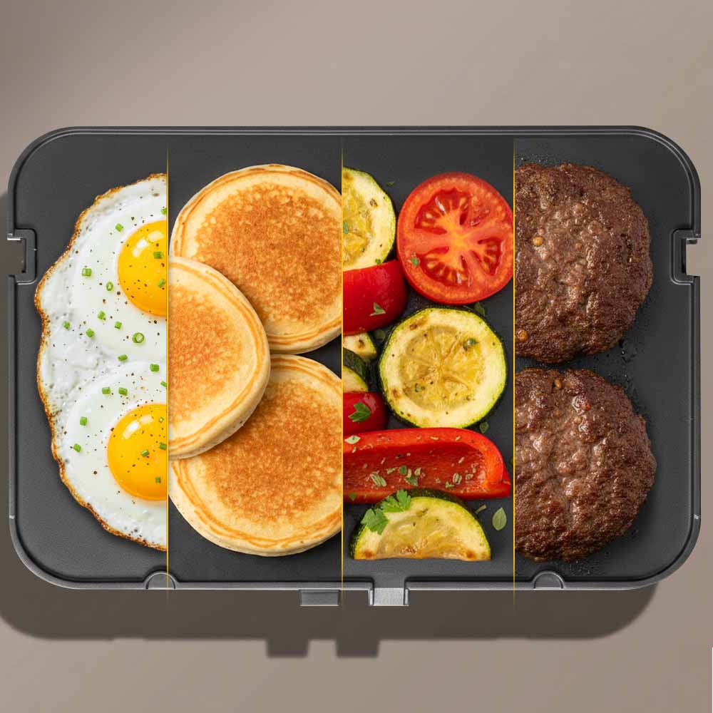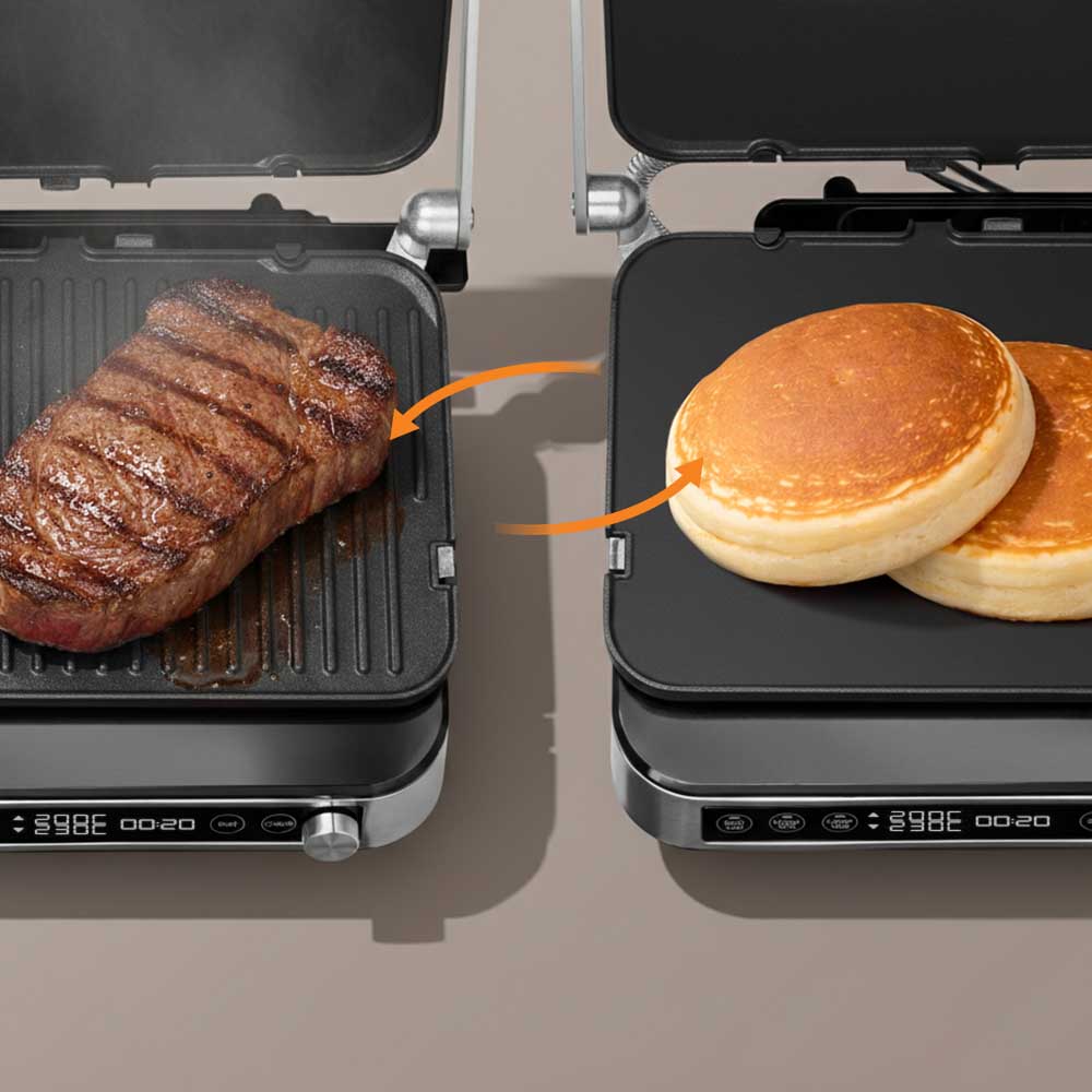 Электрогриль РЕДМОНД GM304 3 в 1 для жарки, запекания и приготовления блюд как на барбекю сочетает стильный дизайн и продвинутые технологии. Двусторонние панели дают свободу: используйте сторону гриль для стейков и овощей, а плоскую — для панкейков и яичницы. Электронный контроль температуры каждой панели и таймер позволяют готовить несколько блюд одновременно, а антипригарное покрытие Mineral Pro делает процесс легким и безопасным. С этим грилем можно удивлять семью и друзей, создавая вкусные блюда по рецептам наших шеф-поваров или своим идеям.