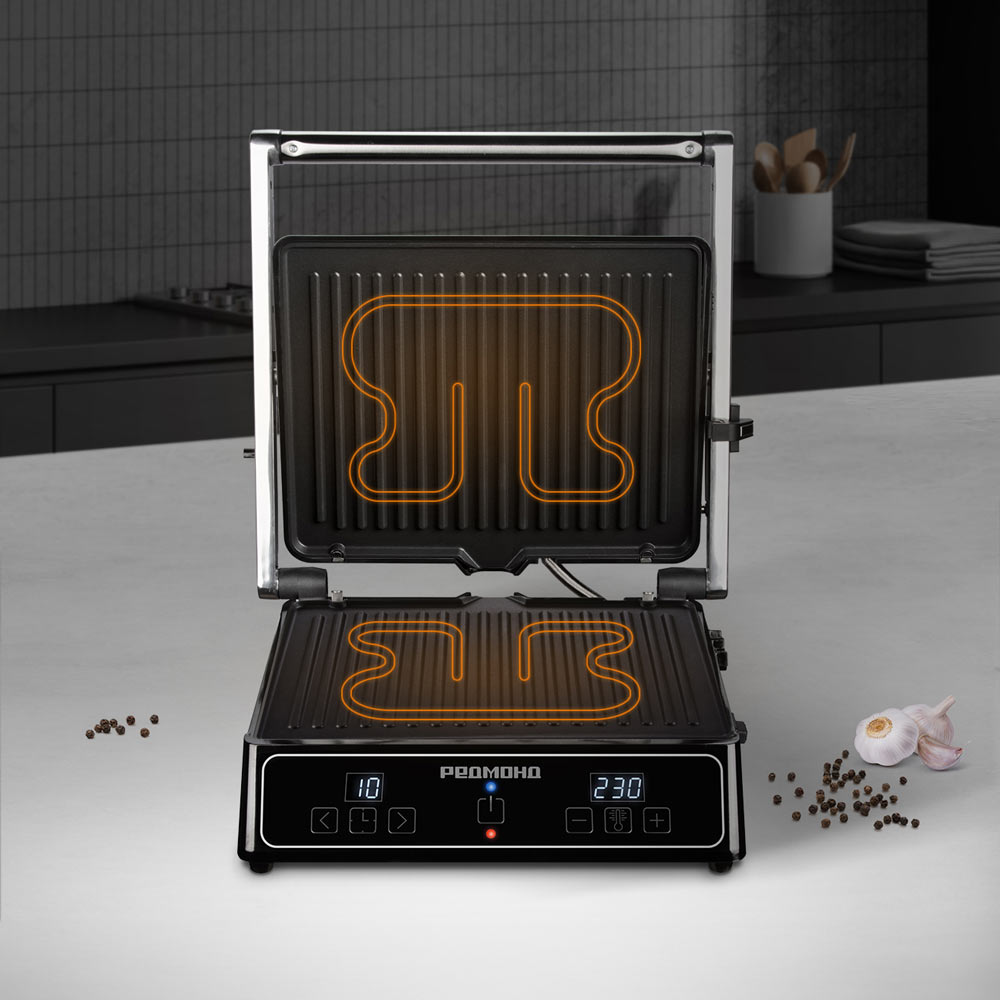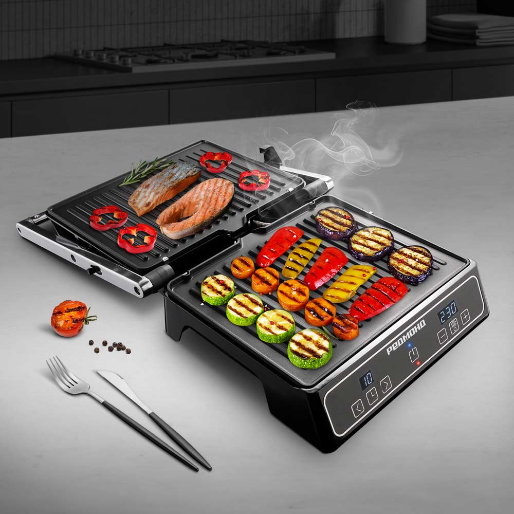 Гриль РЕДМОНД SteakMaster RGM-M821 – это многофункциональный прибор «3 в 1», с помощью которого можно не только жарить стейки, но и готовить закуски барбекю и запекать блюда как в духовке.