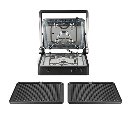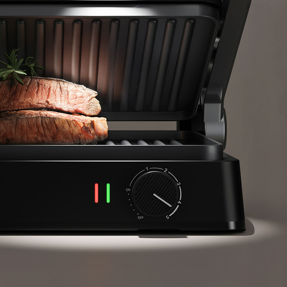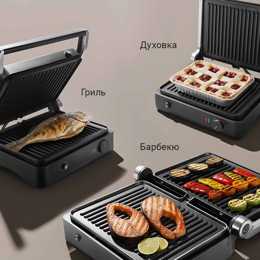 SteakMaster RGM-M822 — многофункциональный прибор, который работает как контактный гриль, барбекю-жаровня и компактная духовка. Надежное антипригарное покрытие защищает панели и позволяет готовить без лишнего масла и жиров. Блюда в электрогриле готовятся в два раза быстрее, чем в обычной духовке или на плите за счет мощного нагрева сразу с двух сторон.