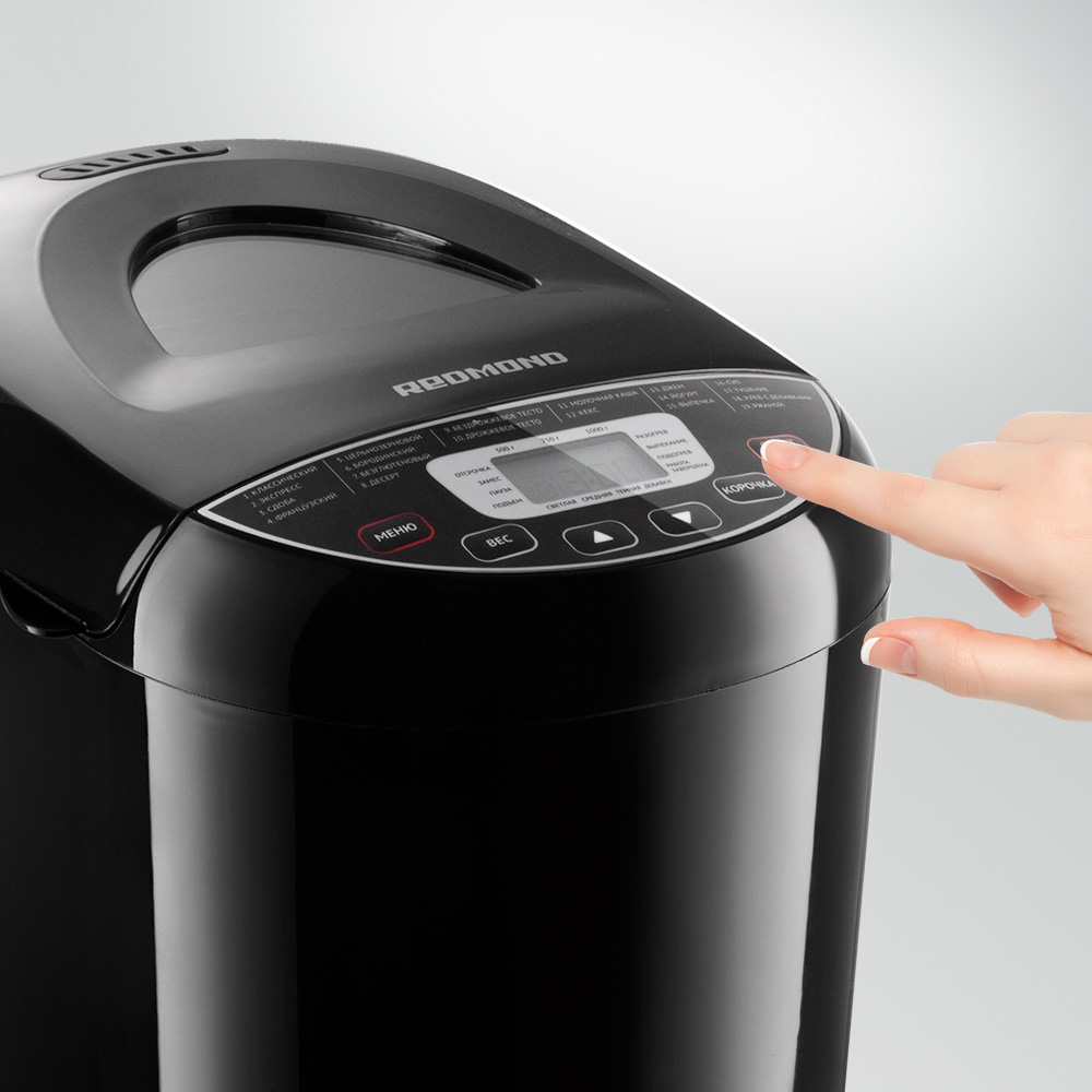 Хлебопечь RBM-1915 – это универсальный кухонный прибор 3 в 1, который помимо основной задачи – выпекания хлеба – может выполнять функции мультиварки и йогуртницы. У хлебопечи 19 автоматических программ, с помощью которых можно печь домашний свежий хлеб, варить супы, тушить вторые блюда, изготавливать домашние джемы, варить молочные каши и сквашивать натуральный домашний йогурт.