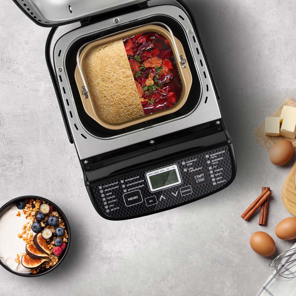 20.02.2025Замечательная хлебопечка! У меня уже был опыт с подобной техникой, но от другого производителя. Испекла молочный хлеб — вышел вкуснейший и с хрустящей корочкой. В планах испечь французский, говорят, он ещё лучше. Управление интуитивное, а через окошко можно наблюдать весь процесс выпечки. В комплекте идёт книга рецептов на русском языке. Всё очень просто: достаточно положить ингредиенты в правильном порядке, и она всё сделает сама. Рекомендую!