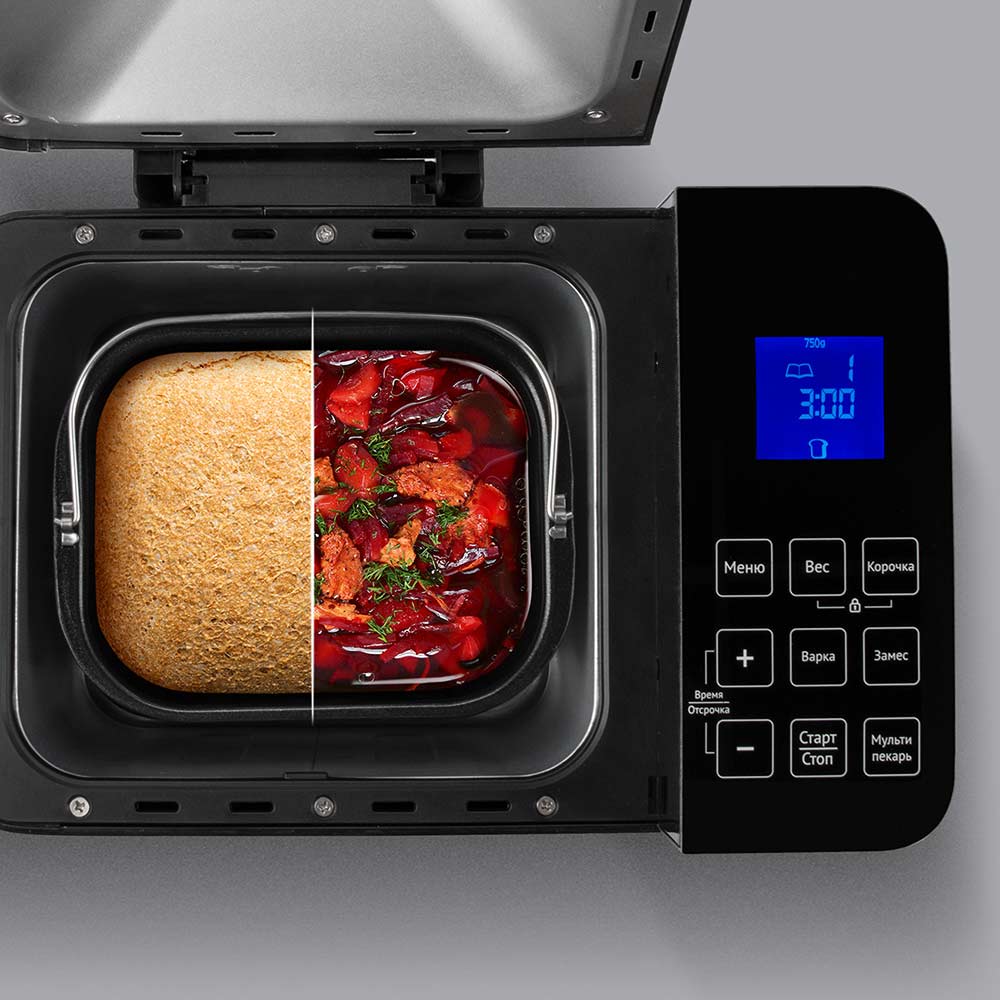 Хлебопечь РЕДМОНД RBM-M1909 – высокотехнологичная и ультрастильная новинка с сенсорным управлением и корпусом из нержавеющей стали, представляющая собой уникальную мультифункциональную модель: наряду с приготовлением ароматного домашнего хлеба, выпечки и десертов, устройство с максимальной лёгкостью решает другие разнообразные кулинарные задачи.