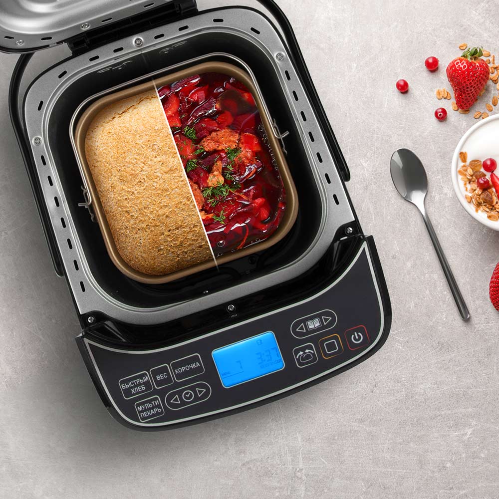 20.02.2025Удобное управление у этой модели ,стильный металлический дизайн смотрится кайфово!много программ разных можно даже варенье делать и джем, можно просто тесто замесить ,есть безглютеновый вид выпечки что для меня было важно, 2 лопасти для замешивания!отличный выбор!