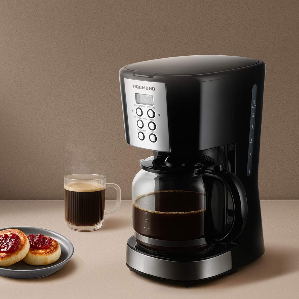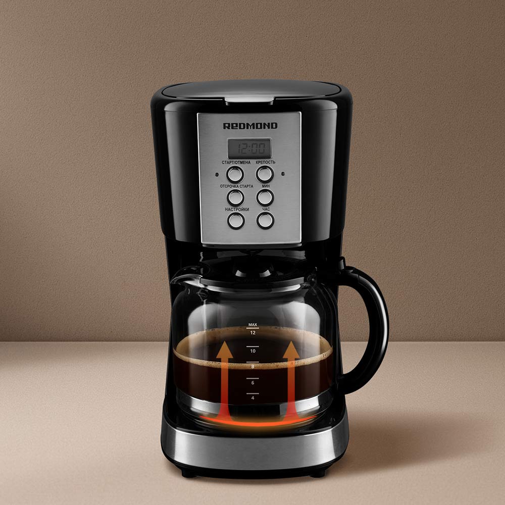 Кофеварка РЕДМОНД СМ705 отлично подойдет для приготовления правильного фильтр-кофе капельным методом. Перед началом приготовления необходимо залить нужное количество воды в резервуар и добавить молотый кофе в съемный фильтр. Настройте режим «Арома» одним нажатием кнопки для усиления насыщенности готового напитка. Благодаря вместительному кувшину можно готовить сразу на большую компанию — для всей семьи или рабочего коллектива.