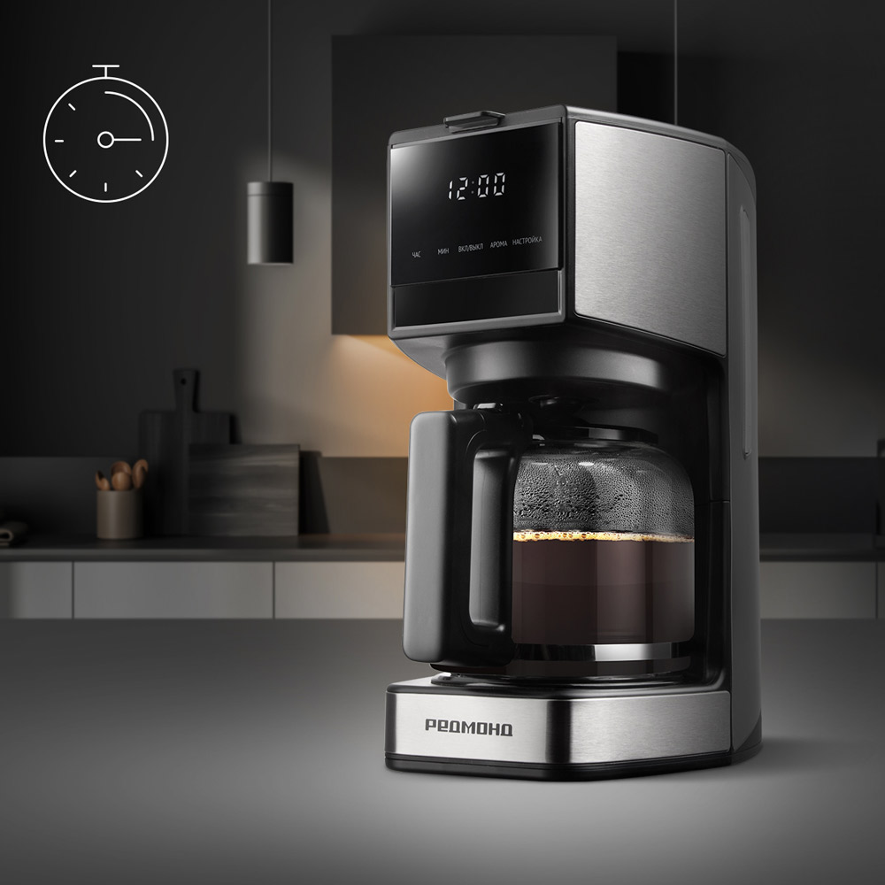 РЕДМОНД СМ706 — капельная кофеварка с сенсорным управлением для приготовления ароматного черного кофе из молотых зерен. Прибор оснащен функцией автоподогрева, таймером отложенного старта, системой «Капля-стоп» и возможностью регулировать насыщенность кофе. Ваш идеальный американо будет готов за считаные минуты.